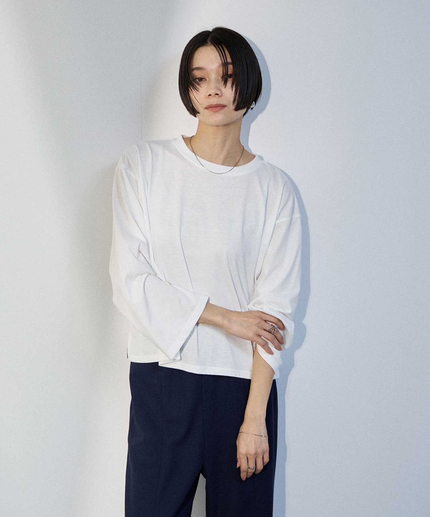 アームから袖先にかけて広がるデザインのおかげで、着るだけで自然な華奢見えが叶うのが嬉しいポイント♪
