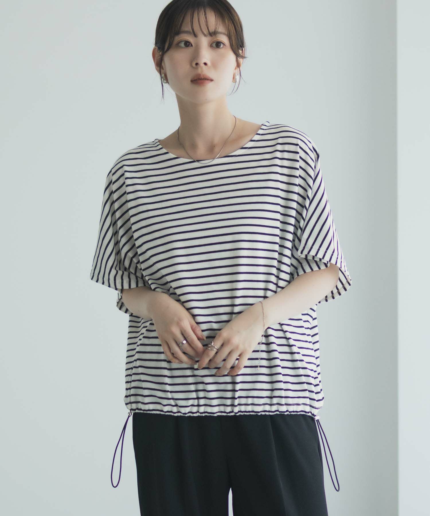 イドネス 半袖Tシャツ 綿混 裾ドロスト ボーダー 白 カットソー