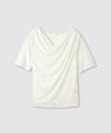 なめらかな落ち感と、顔まわりを華やかに見せてくれるドレープネックが、一枚で着映えするデザインカットソー。