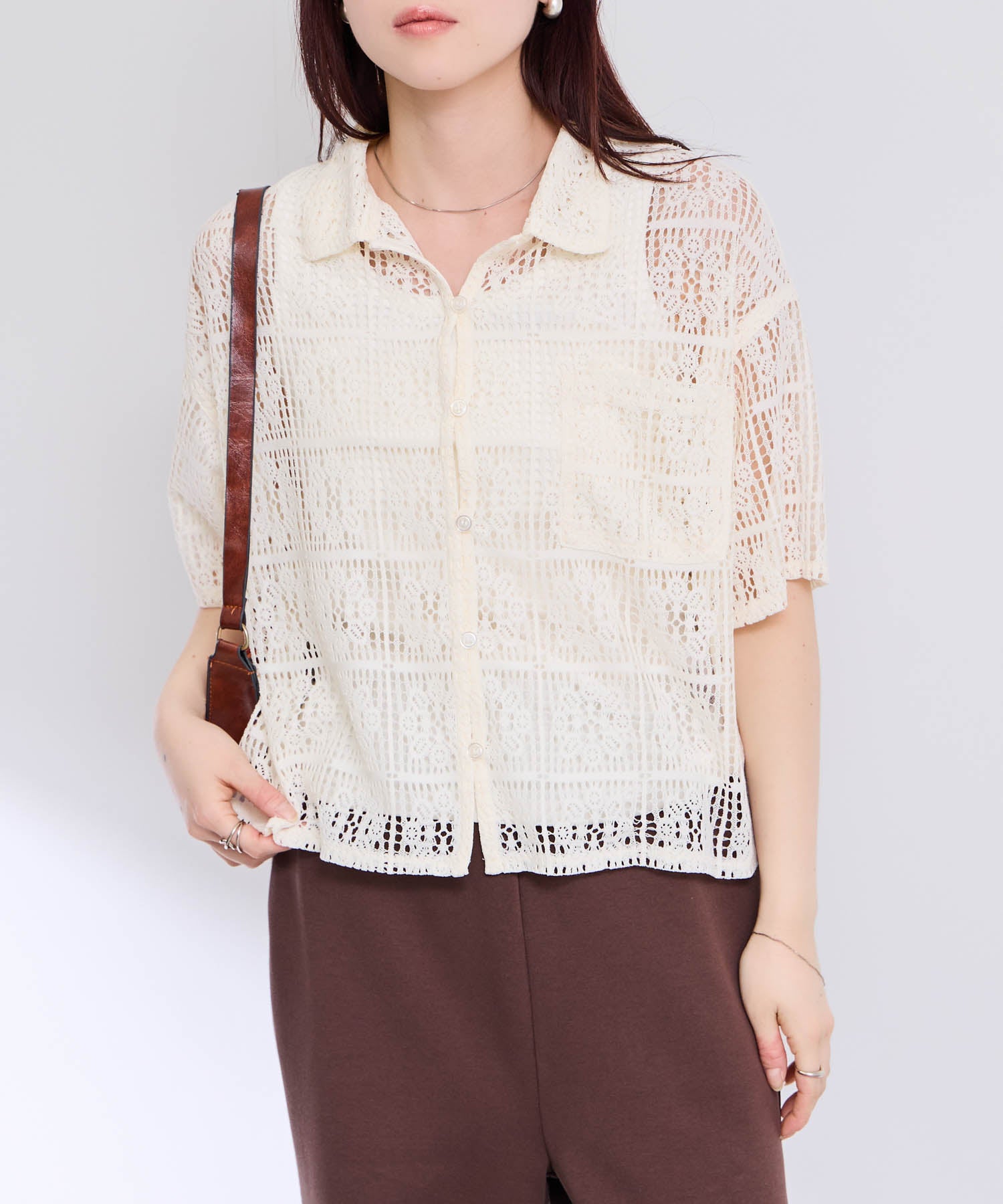 軽やかな透け感が魅力の、クロップド丈レースシャツ。