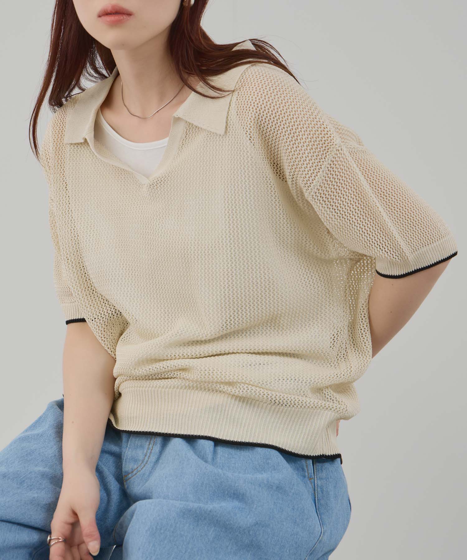 ニットはシャリ感のあるアクリル糸を使用したメッシュ素材なので夏場でも着用できます。
