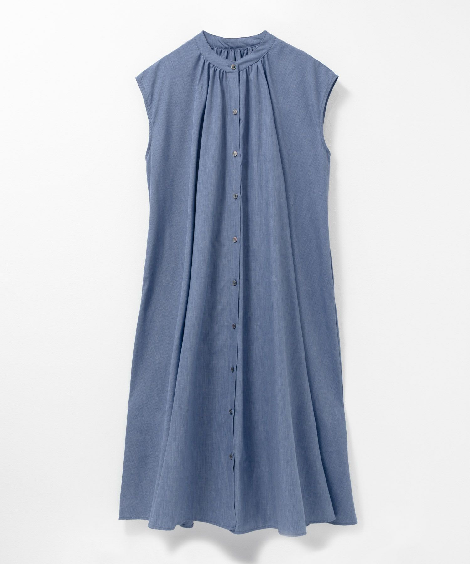 デニムのような見え方なのに、フラットでクリーンな表面感が魅力のシャツワンピース。