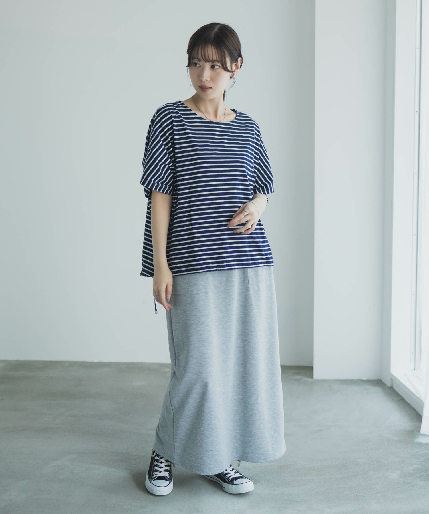 milli de l'air イレギュラーボーダーラガーシャツ レディース