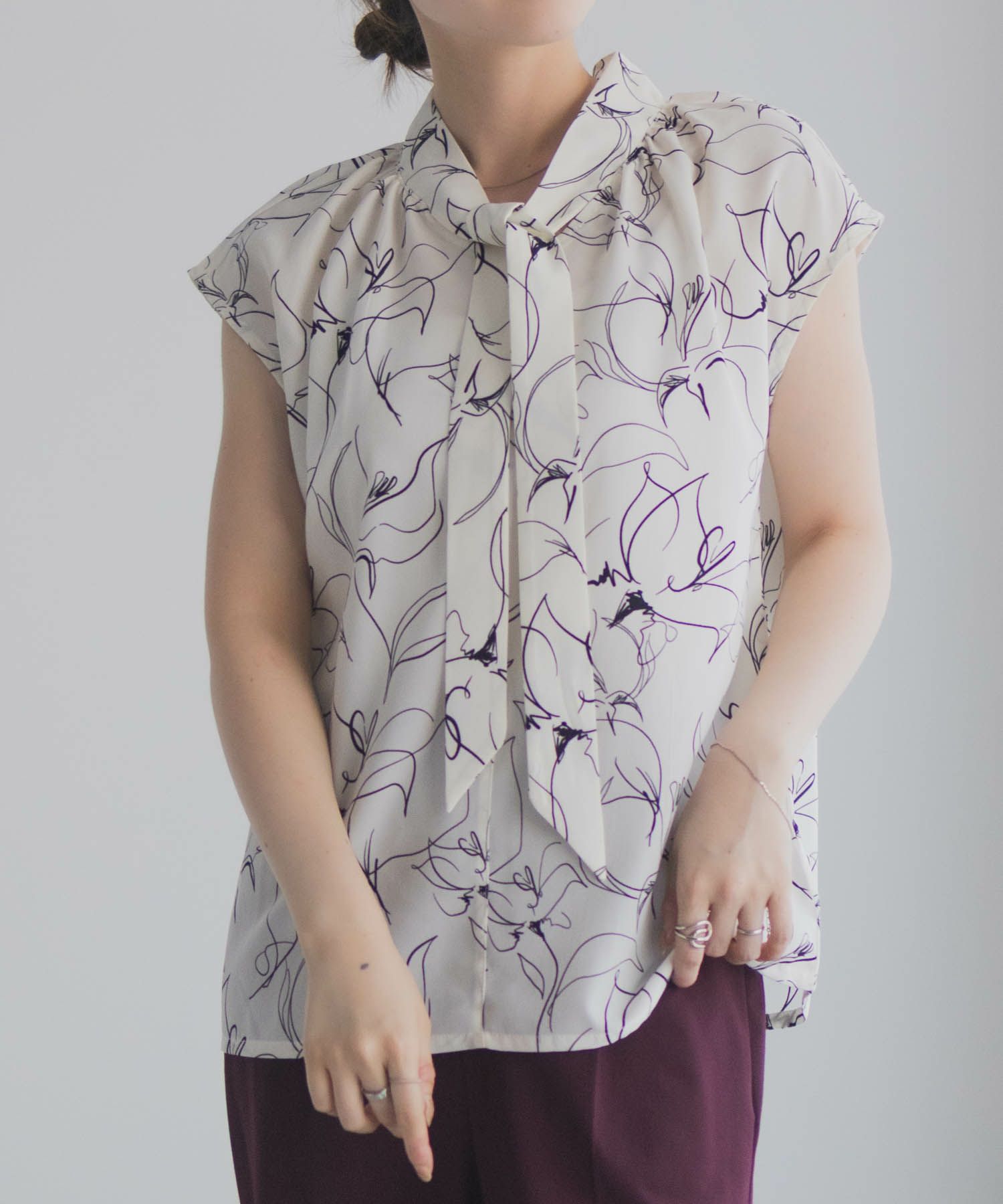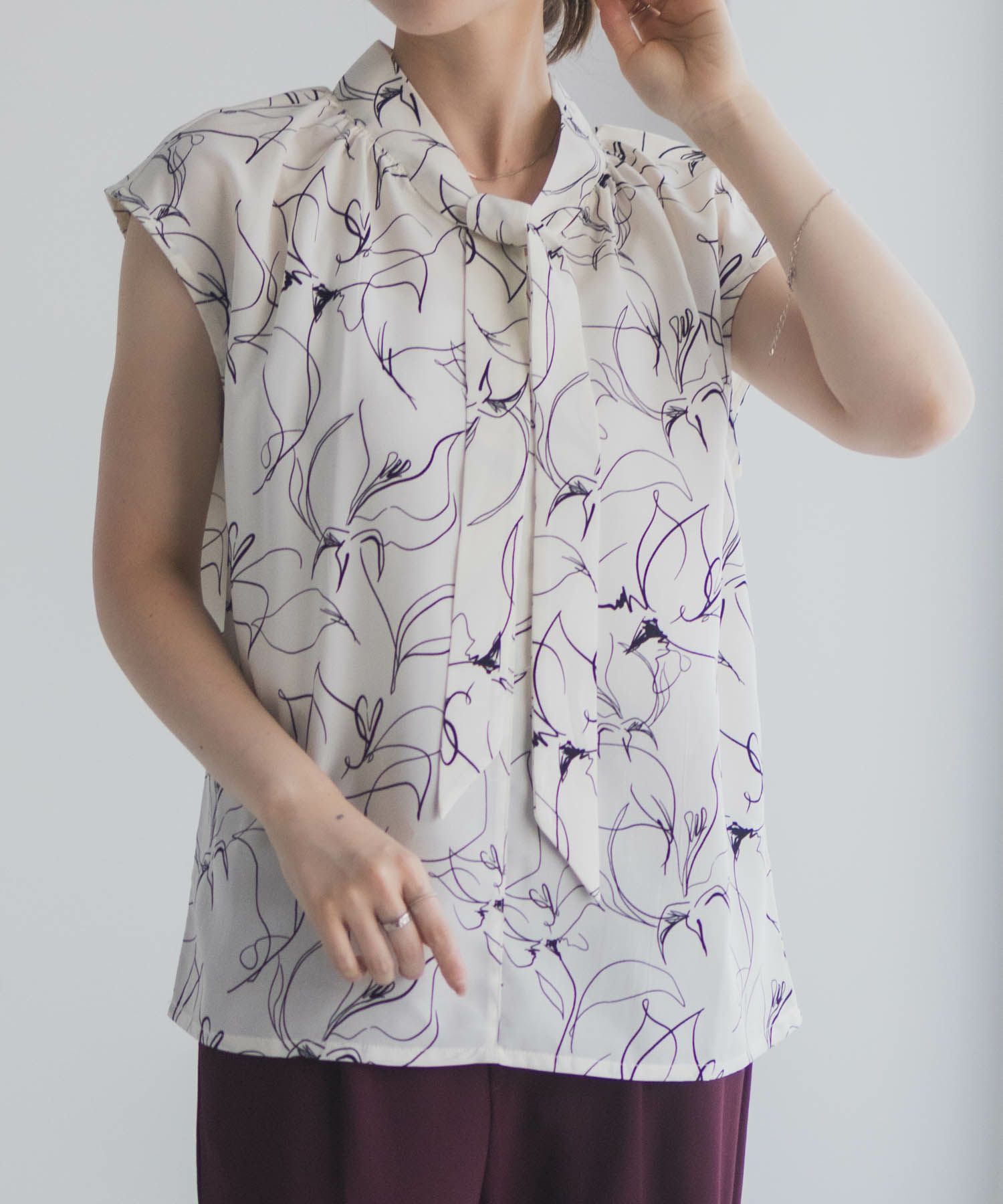 milli de l'air フリルネックボウタイブラウス レディース