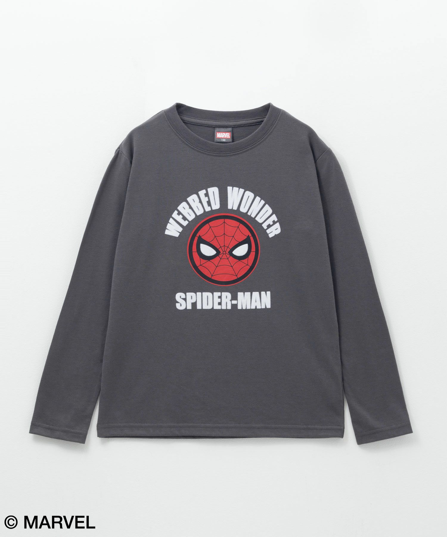 立体感のあるフロッキープリントがポイントのスパイダーマンプリントTシャツ。