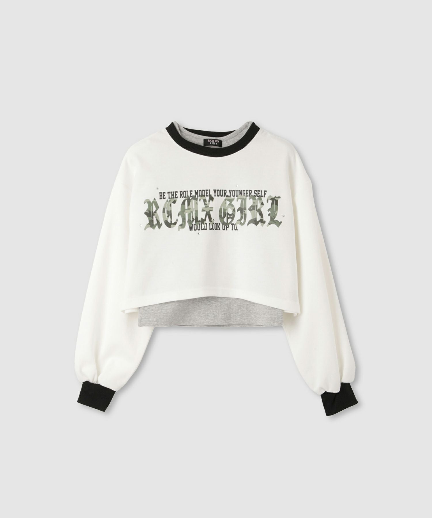 リッチミックス トレーナー タンクトップ アンサンブル 子供服 女の子 ガールズ ポンチ素材 リブ ラインストーン ロゴ プリント 白 黒 セットアイテム
