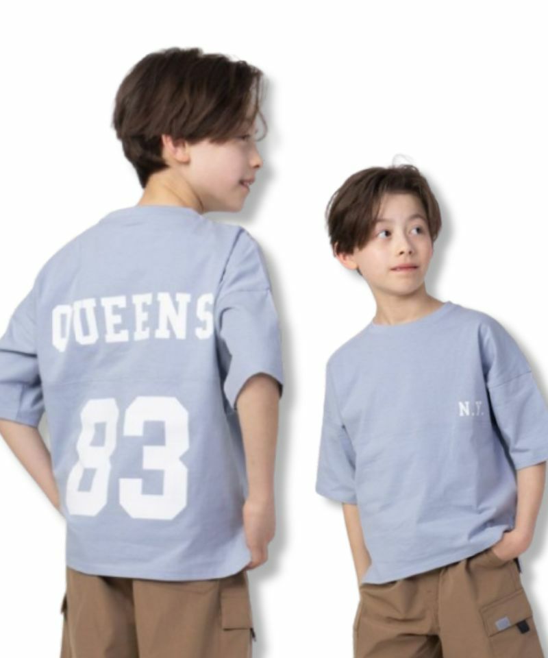 ネイビー 半袖Tシャツ 五分袖Tシャツ 子供服 男の子 ボーイズ トレンド 綿100% USコットン ワイドシルエット ゆったり サイドスリット ネームタグ プリント 黒 カットソークルーネック カットソー