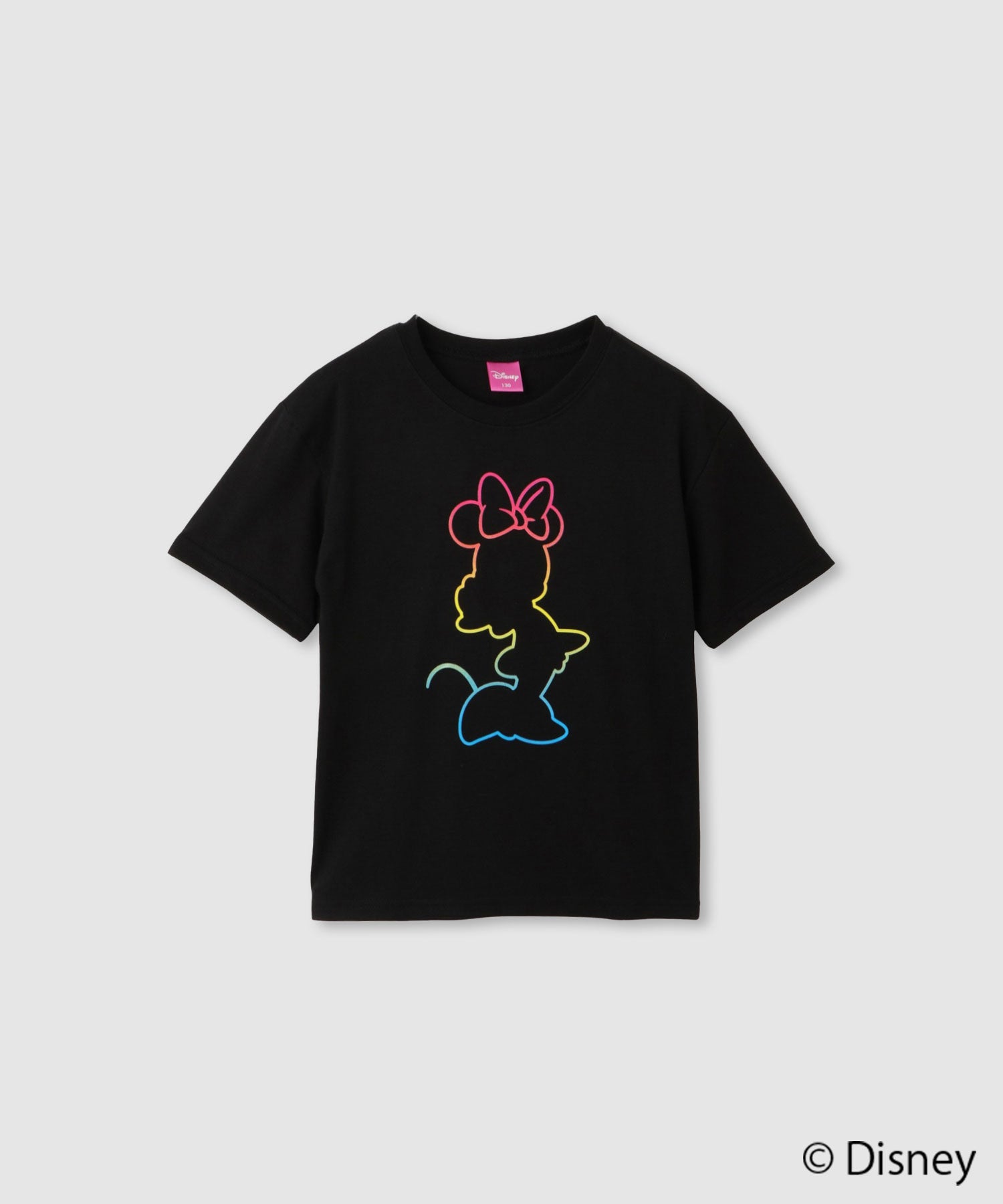 ミニーマウスをモチーフにした、レインボー蛍光プリント半袖Tシャツ。