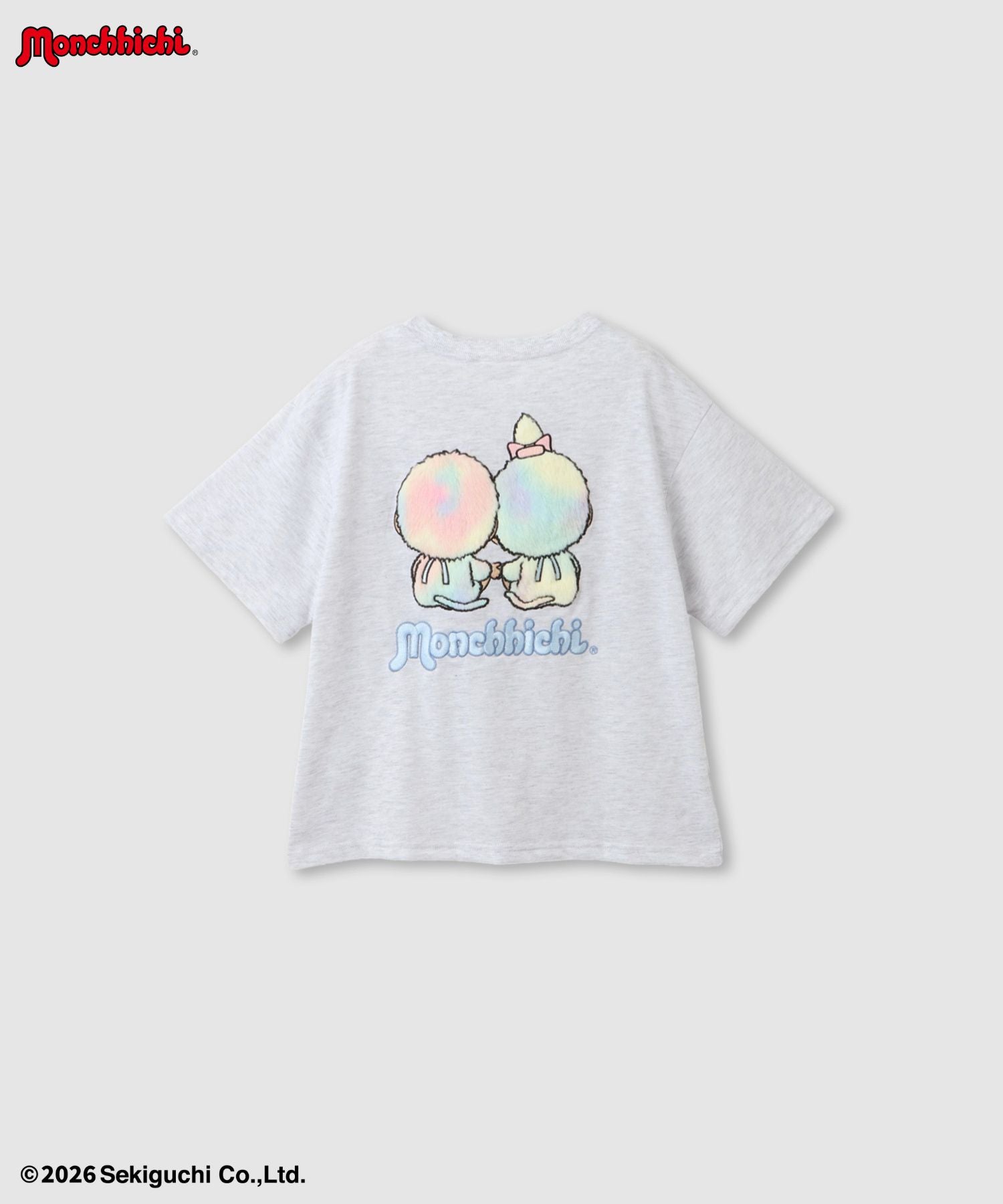レインボーカラーのファーをあしらった「モンチッチ」の後ろ姿がかわいい半袖Tシャツ。