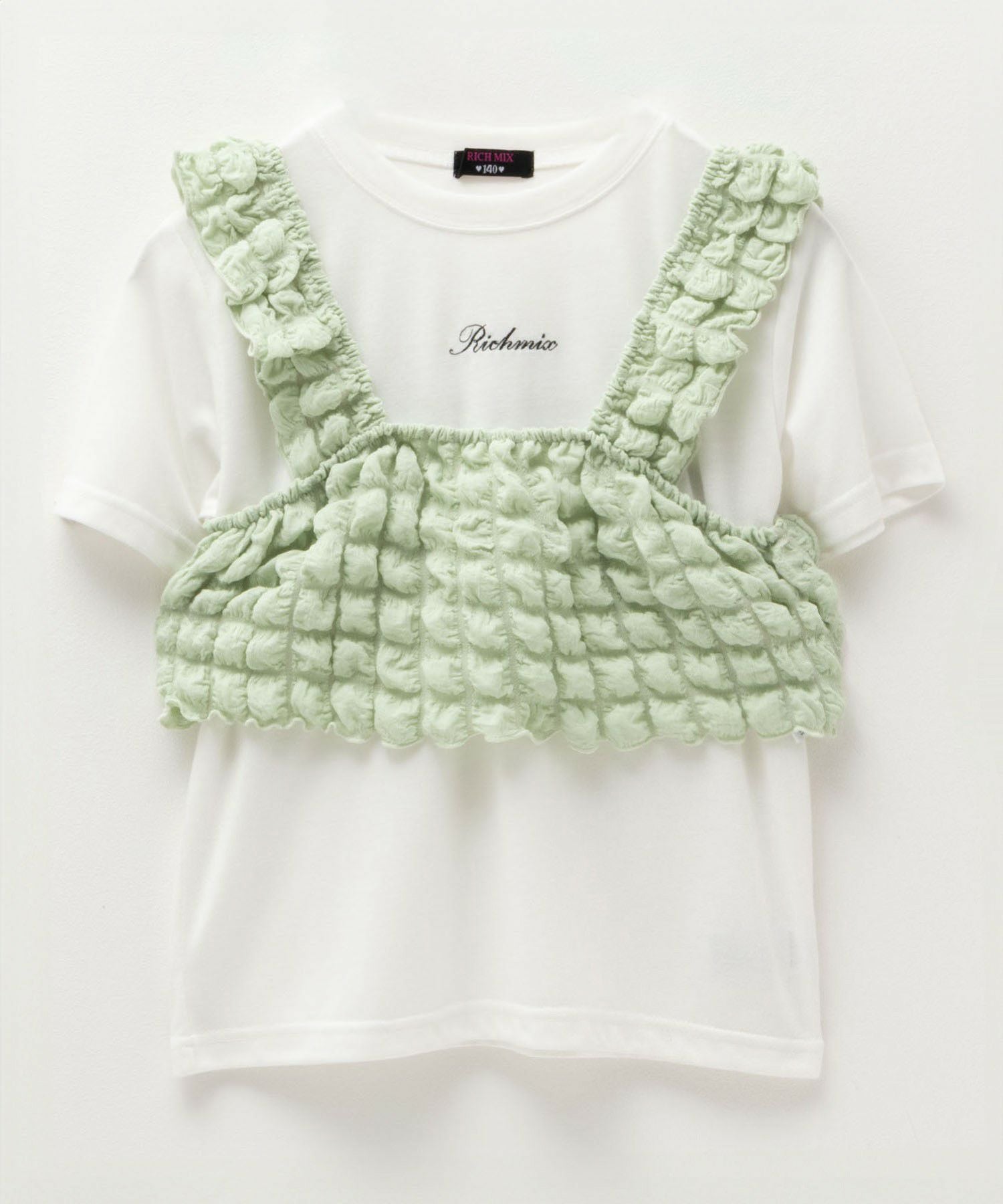 ティーグラフィックス ビスチェ 半袖Tシャツ アンサンブル 子供服 女の子 ガールズ ポップコーン生地 接触冷感 ひんやり ロゴ刺繍 カットソー