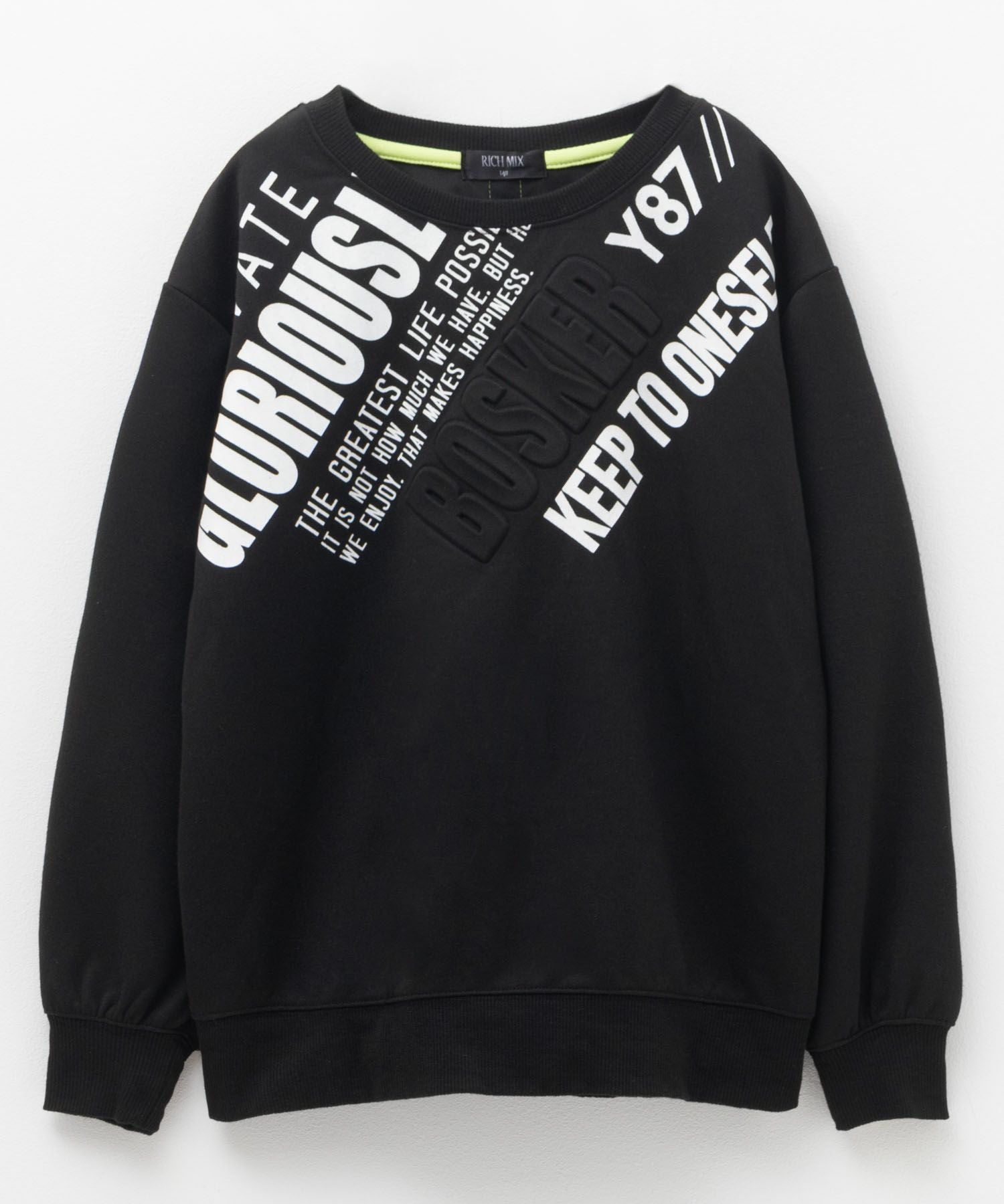 リッチミックス トレーナー スウェット ポンチ素材 子供服 男の子 ボーイズ エンボス加工 ロゴ クルーネック プルオーバー