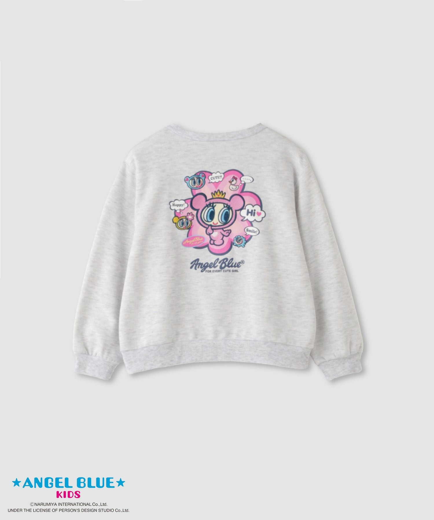 エンジェルブルー トレーナー スウェット 子供服 女の子 ガールズ ポンチ素材 綿混 キャラクター 刺繍 プリント クルーネック かわいい