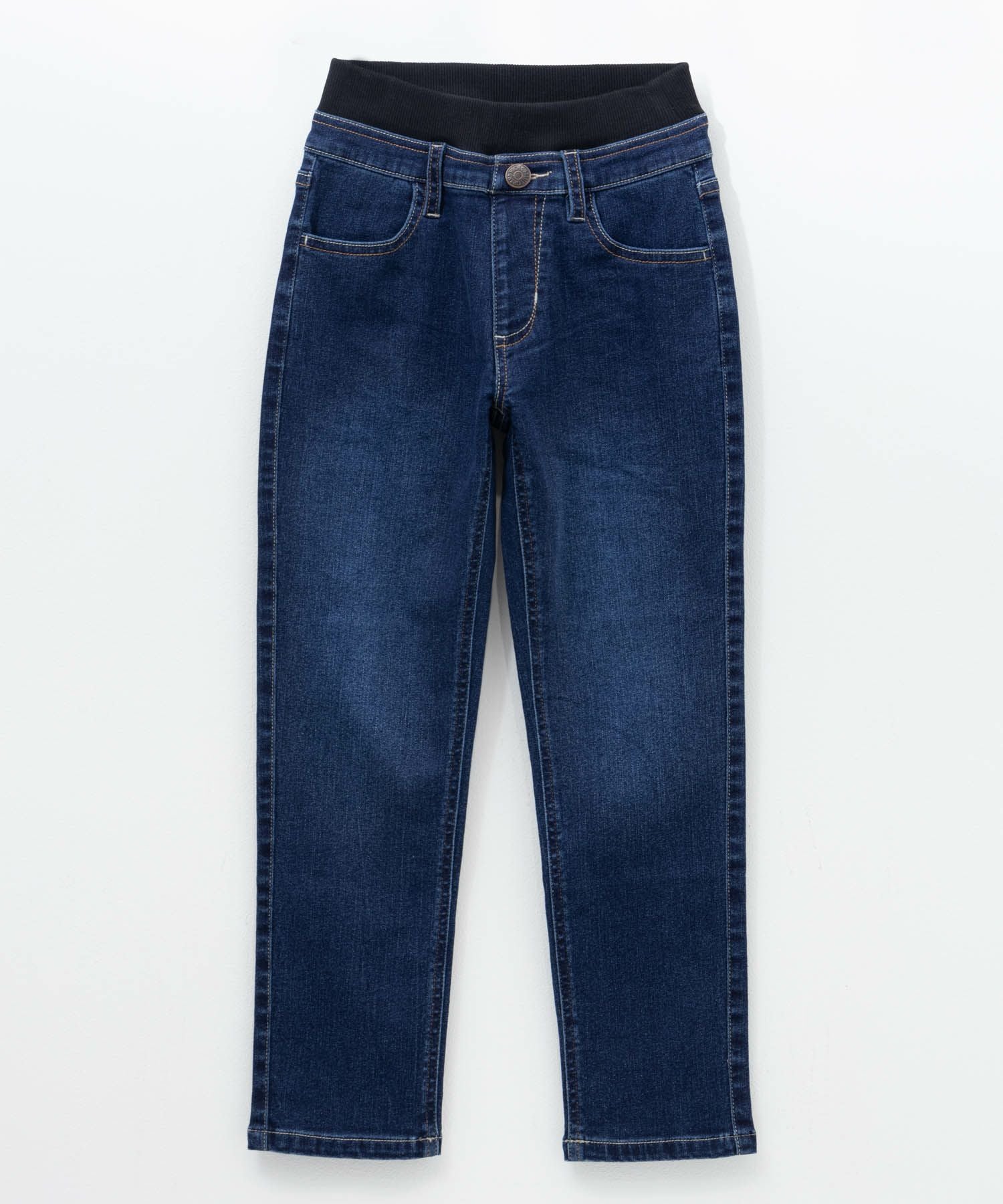 ウエストはリブ仕様で、お子様自身でも着脱しやすいストレスフリーなデニムアイテム。