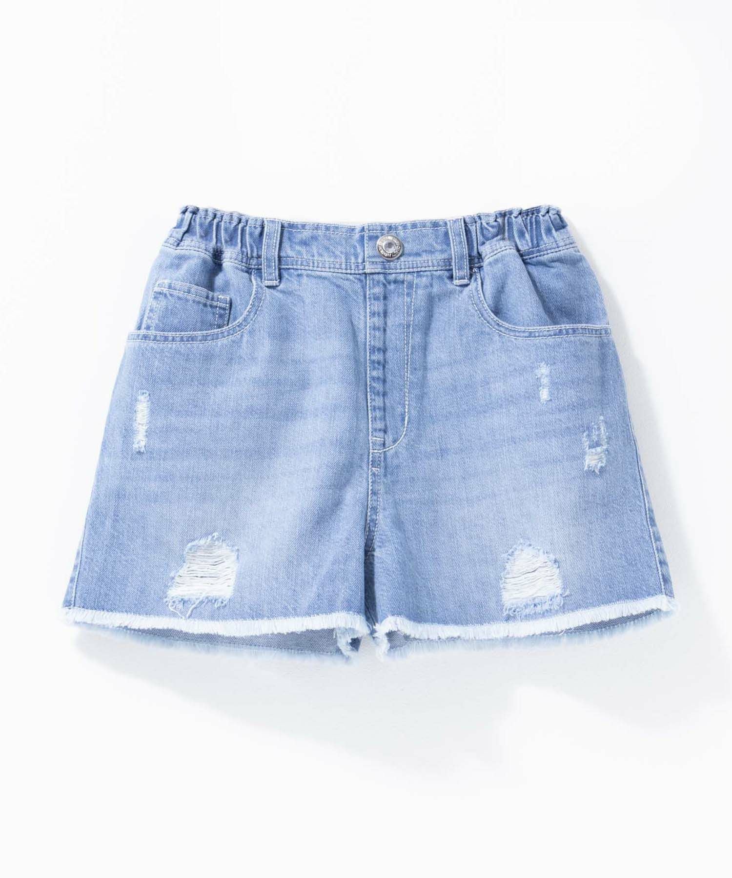 夏の定番ダメージデニムショートパンツ。