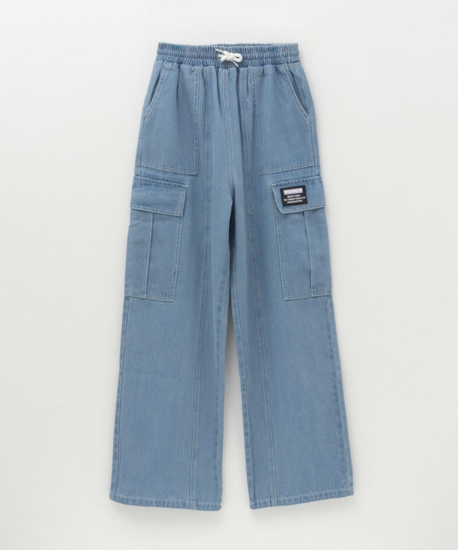 リッチミックス カーゴパンツ ジョガーパンツ デニム 子供服 女の子 ガールズ ポケット ウエスト ゴム 紐 裾ドローコード ネームタグ ロングパンツ