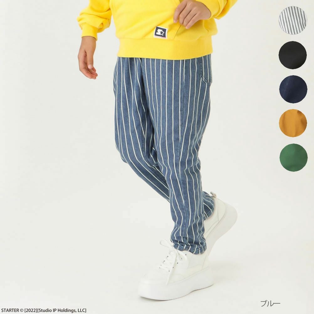 スターター テーパードパンツ ストレッチ ウエストゴム 子供 男の子 女の子 ボーイズ ガールズ デニム ストライプ ヒッコリー スケーターパンツ ロングパンツ ユニセックス