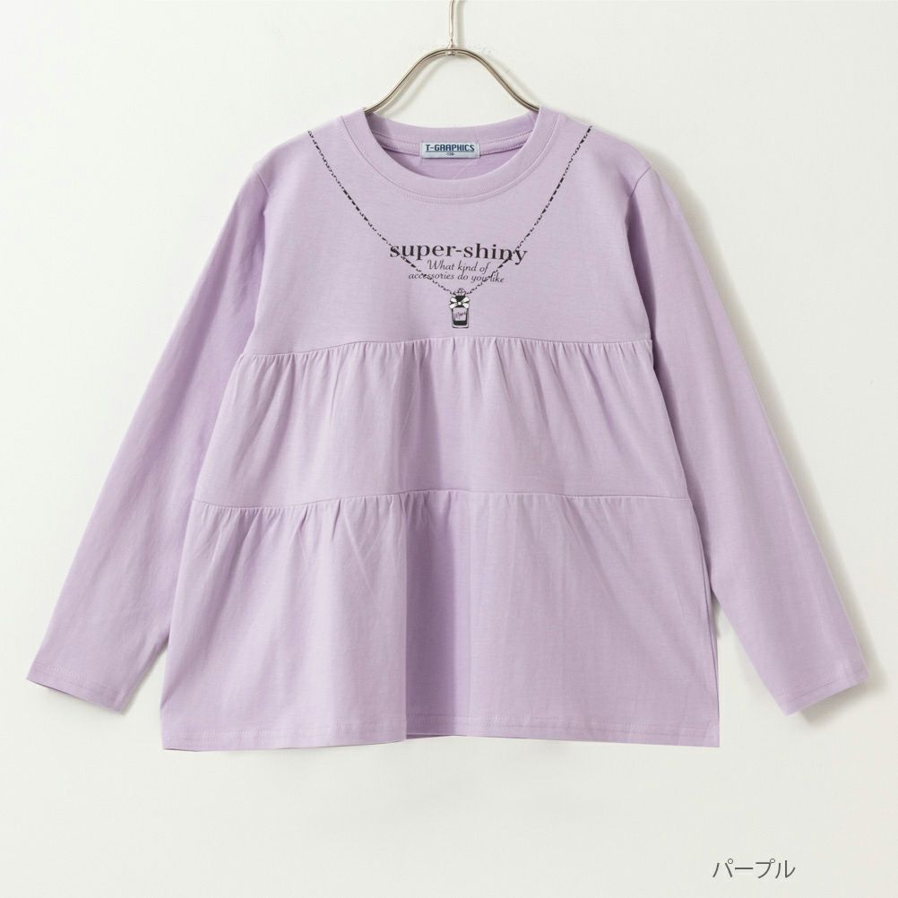 ティーグラフィックス 長袖Tシャツ ロンT 綿100% 子供服 女の子 ガールズ プリント ティアード 切替 カットソー トロンプルイユ