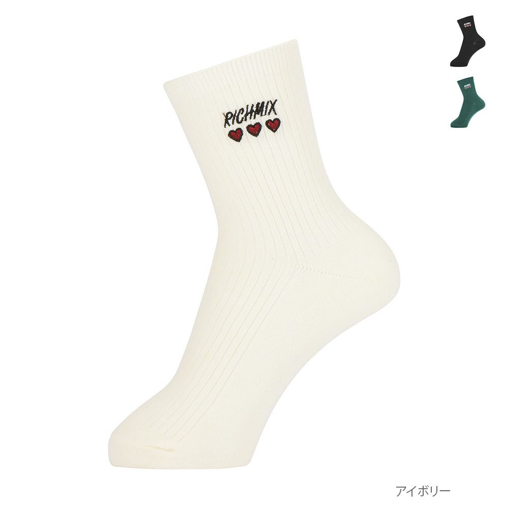RICH MIX刺繍とハート刺繍が入ったクルーソックスです。