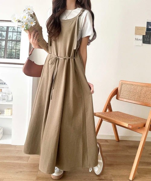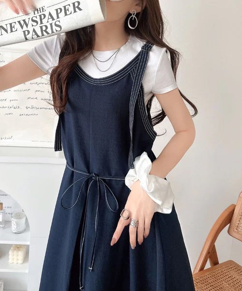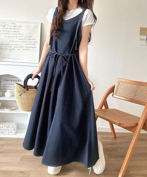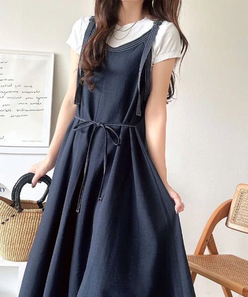 他の画像を見る Classical Elf【UVカット・防シワ・吸水速乾・接触冷感機能付き】優しく揺れる、大人の抜け感。配色ステッチフロントタックショルダーストラップリボン付ロングワンピース 定価 ¥ 5,999 値下げ価格 ¥ 4,999 税込 カートに入れる お気に入り追加