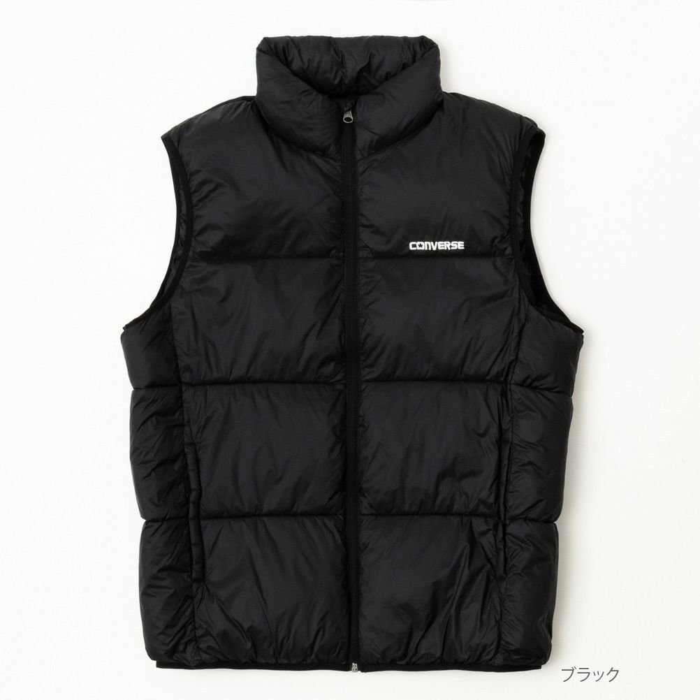 コンバース 中綿ベスト ナイロンベスト 撥水 保温 ロゴ 配色切替 リサイクル素材 ジップアップ サステナブル アウターベスト