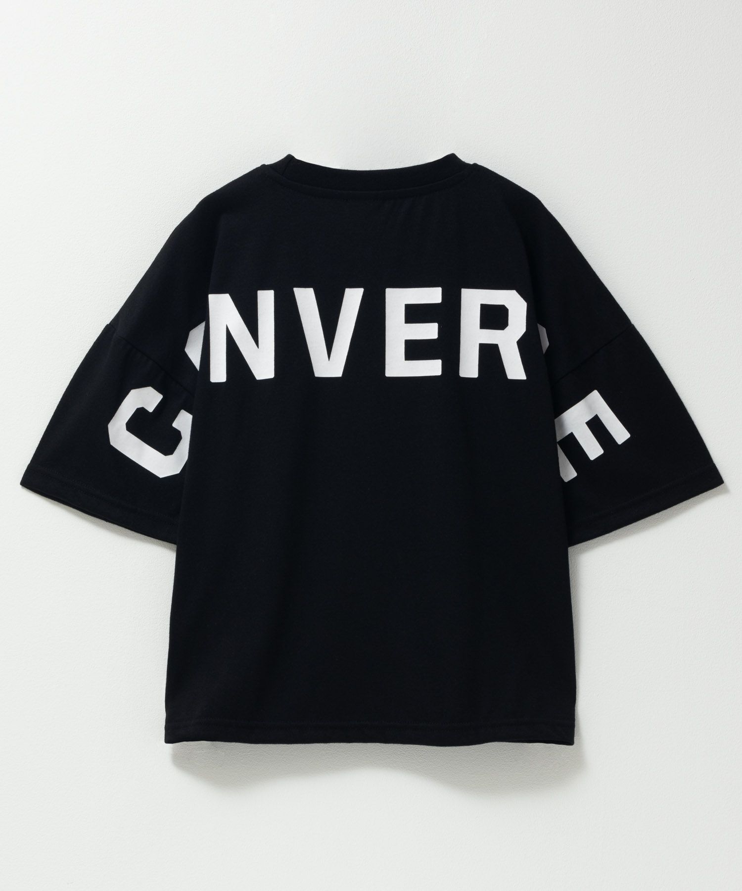 コンバース 半袖Tシャツ 五分袖 子供服 男の子 女の子 ボーイズ ガールズ ユニセックス ビッグシルエット 大きめ ロゴ プリント刺繍 黒 クルーネック カットソー