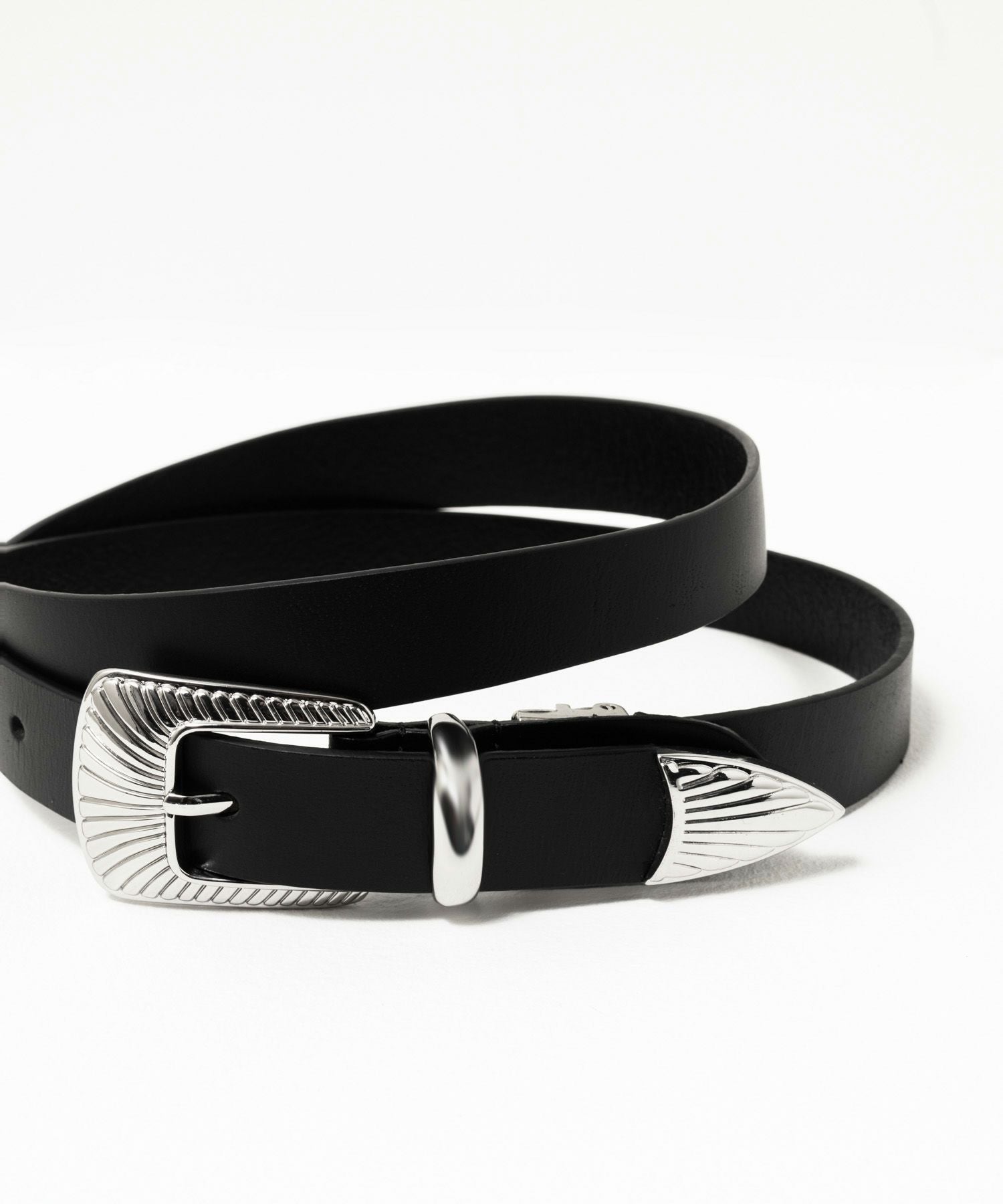 リー ベルト 本革 レザー サイズ調整 ウエスタン バックル 黒 細め 幅25mm プレゼント ギフト