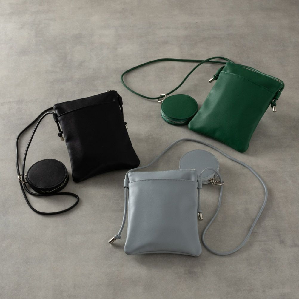 柔らかいスムースタッチの合成皮革を使用したマルチミニポーチ。