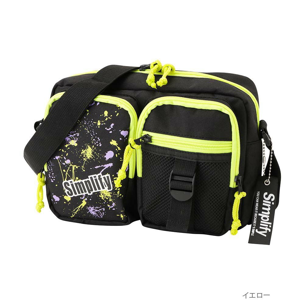 シンプリファイ ショルダーバッグ ボディバッグ 撥水 子供 男の子 ボーイズ プリント スプラッシュ柄 ロゴ 外ポケット 内ポケット 鞄 バッグ かばん