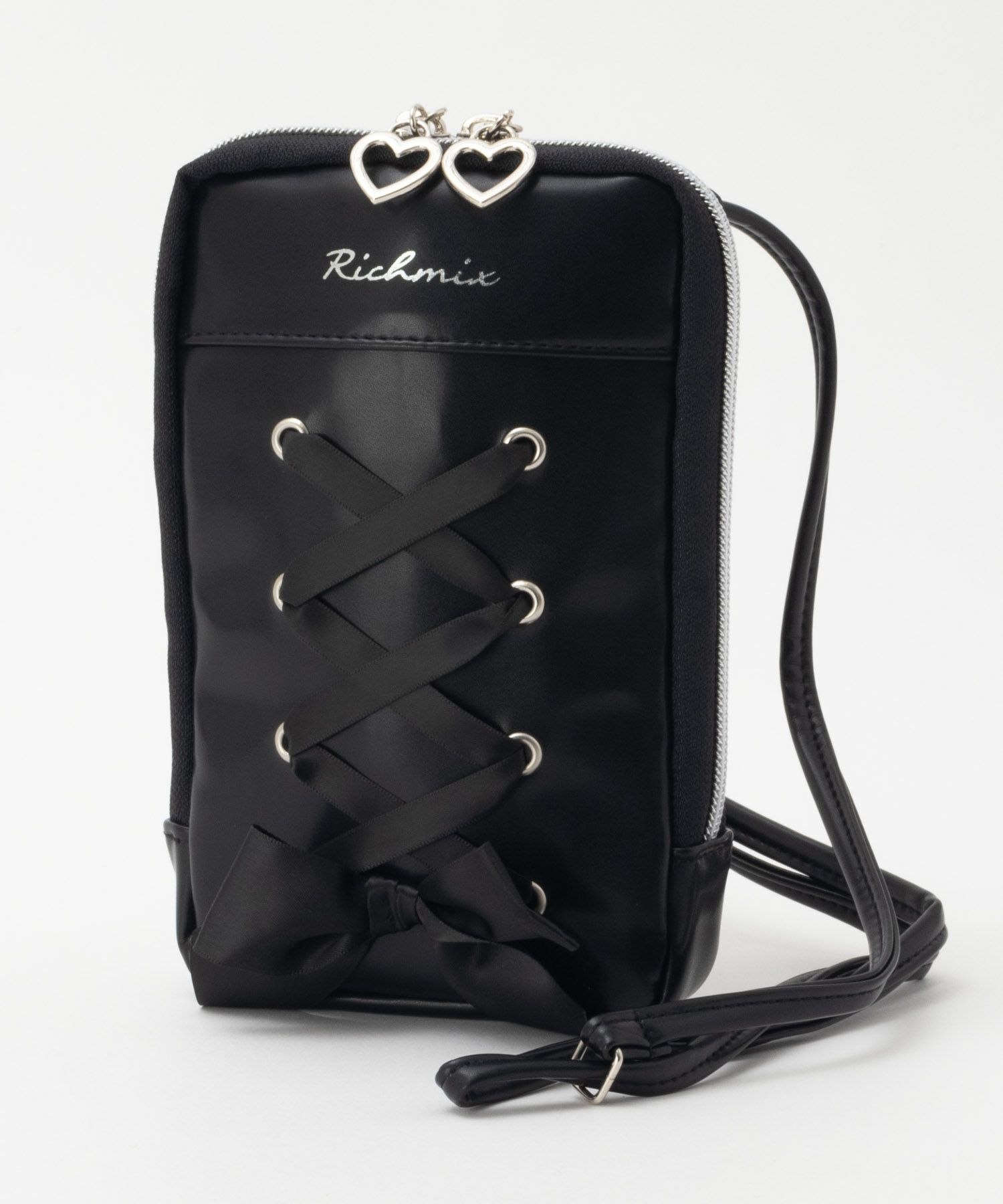リッチミックス ショルダーバッグ ウォレット ポーチ 子供服 女の子 ガールズ 内ポケット 合皮 リボン ロゴ 長さ調整可能 鞄 バッグ かばん