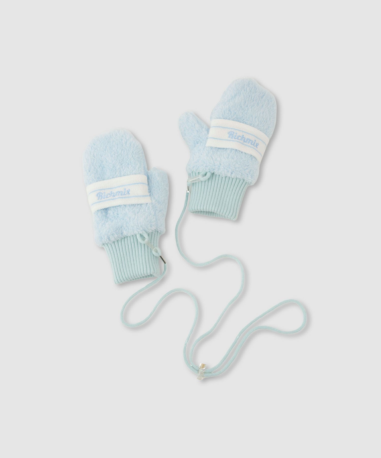 リッチミックス 手袋 ミトン 子供服 女の子 ガールズ ボア ふわもこ あったか ロゴ 刺繍 紐付き 指ぬき
