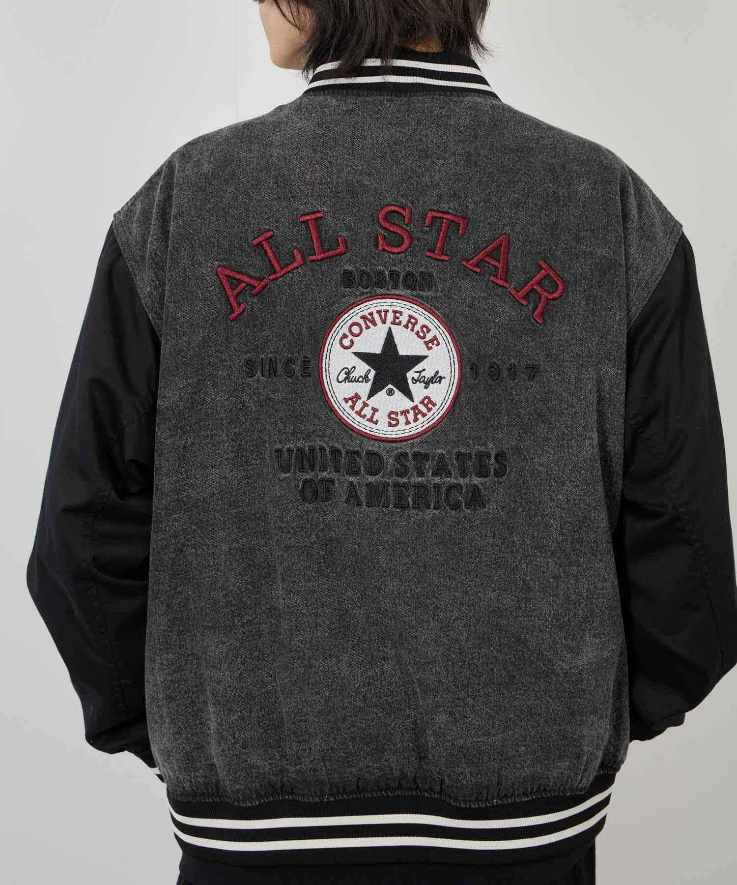 コンバース スタジャン デニムジャケット 綿100% コットン ケミカルウォッシュ 黒 ブランド ロゴ 刺繍 スタジアムジャケット ユニセックス レディース