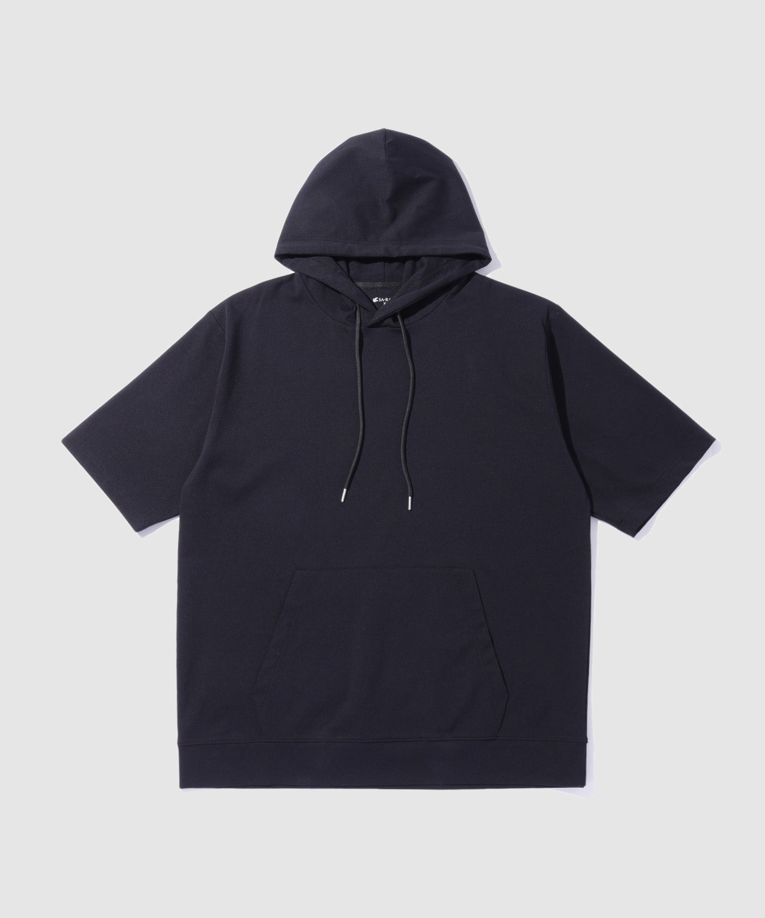 ネイビー 半袖 パーカー ポンチ素材 冷感 ひんやり 大きめ ゆったり ドローコード カンガルーポケット 黒 無地 プルオーバー プルパーカー ユニセックス レディース