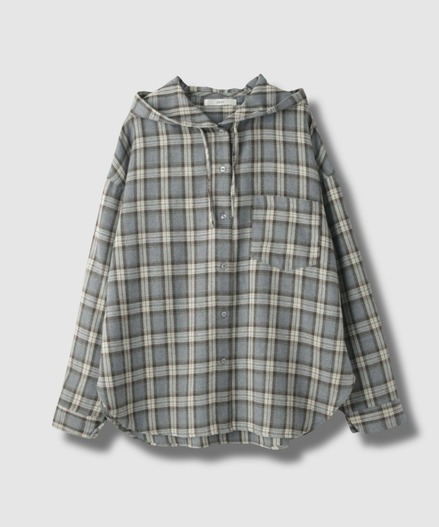 イドネス 長袖シャツ シャツパーカー ネルシャツ ゆったり ラウンドヘム チェック柄 カジュアルシャツ