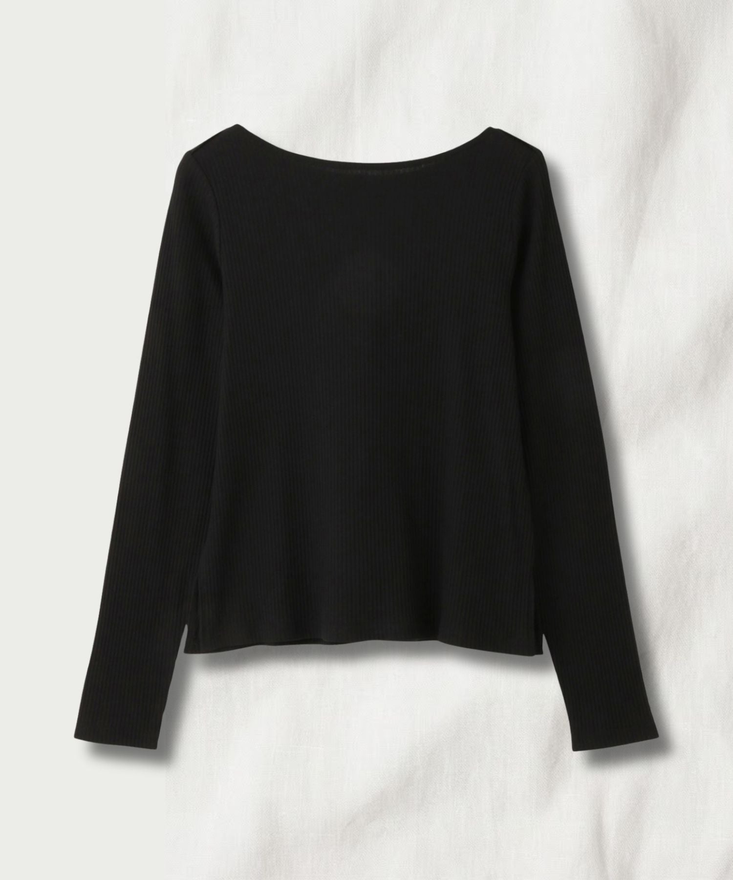 ボートネックがデコルテをきれいに魅せる長袖カットソー。