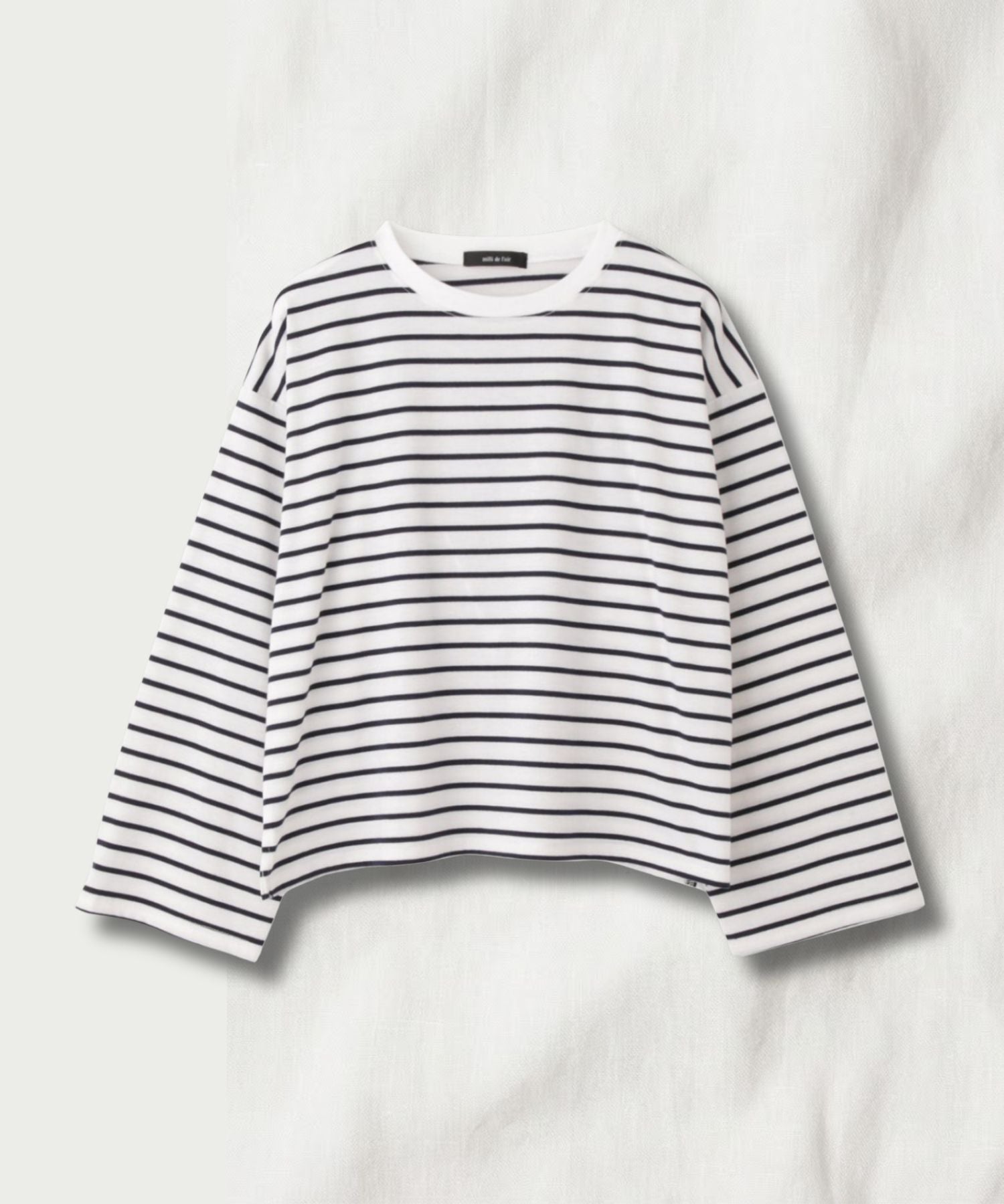 ミリデラール 長袖Tシャツ ロンT ゆったり クロップド丈 ボーダー 白 クルーネック カットソー