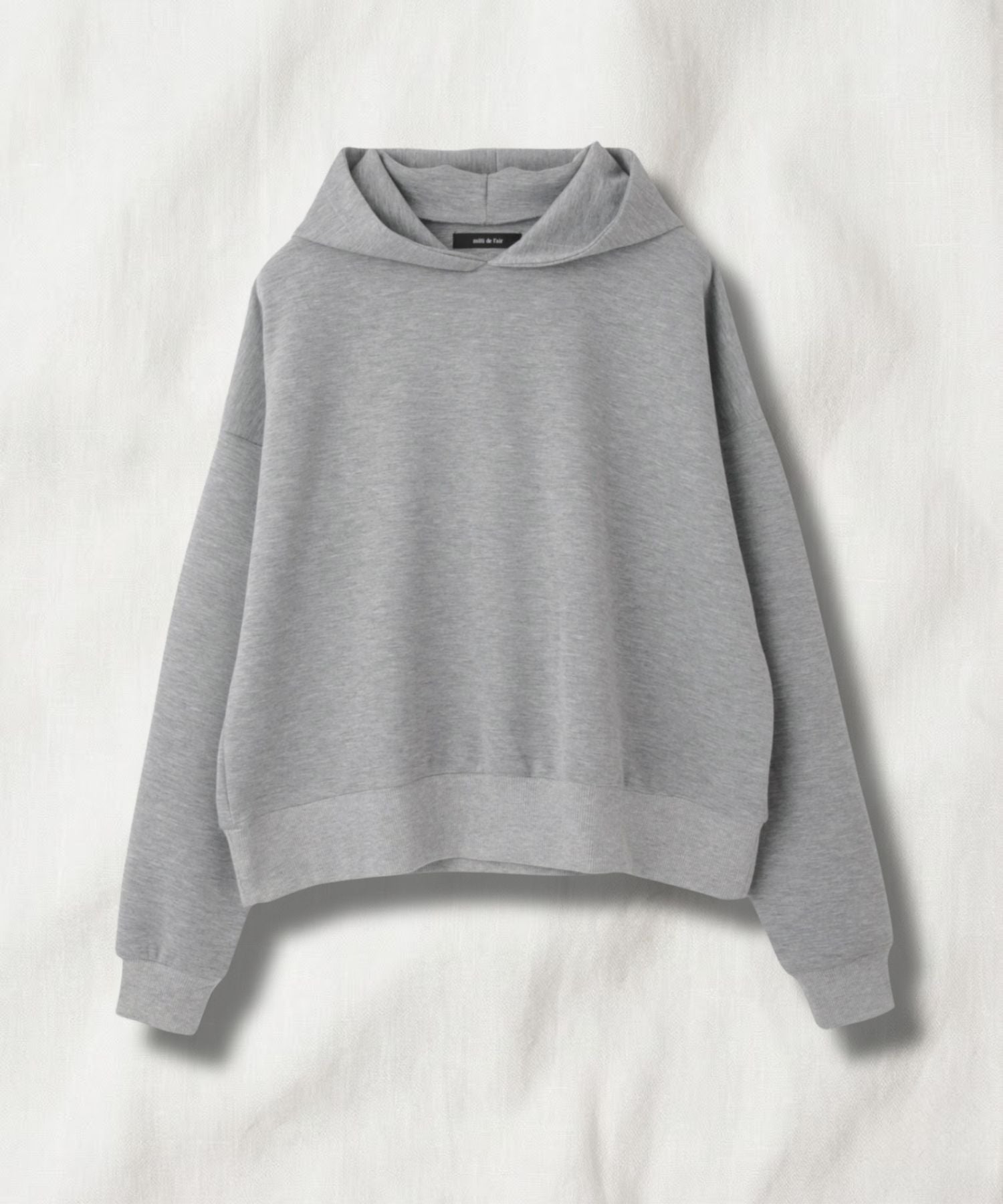 素材の持つクリーンな表面感をフードデザインでカジュアルダウン。