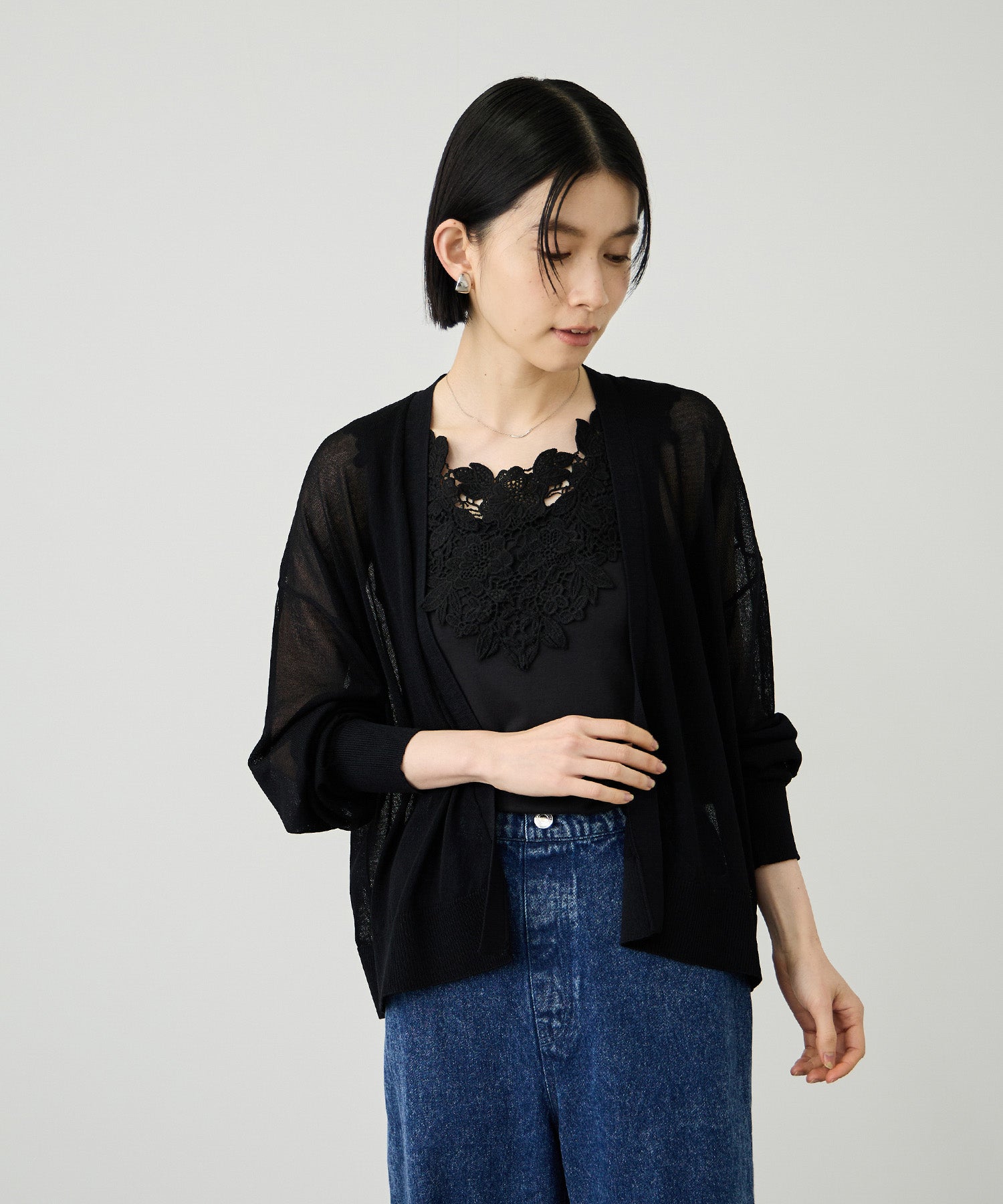 涼しげな透け感が魅力の、薄手ニットカーディガン。