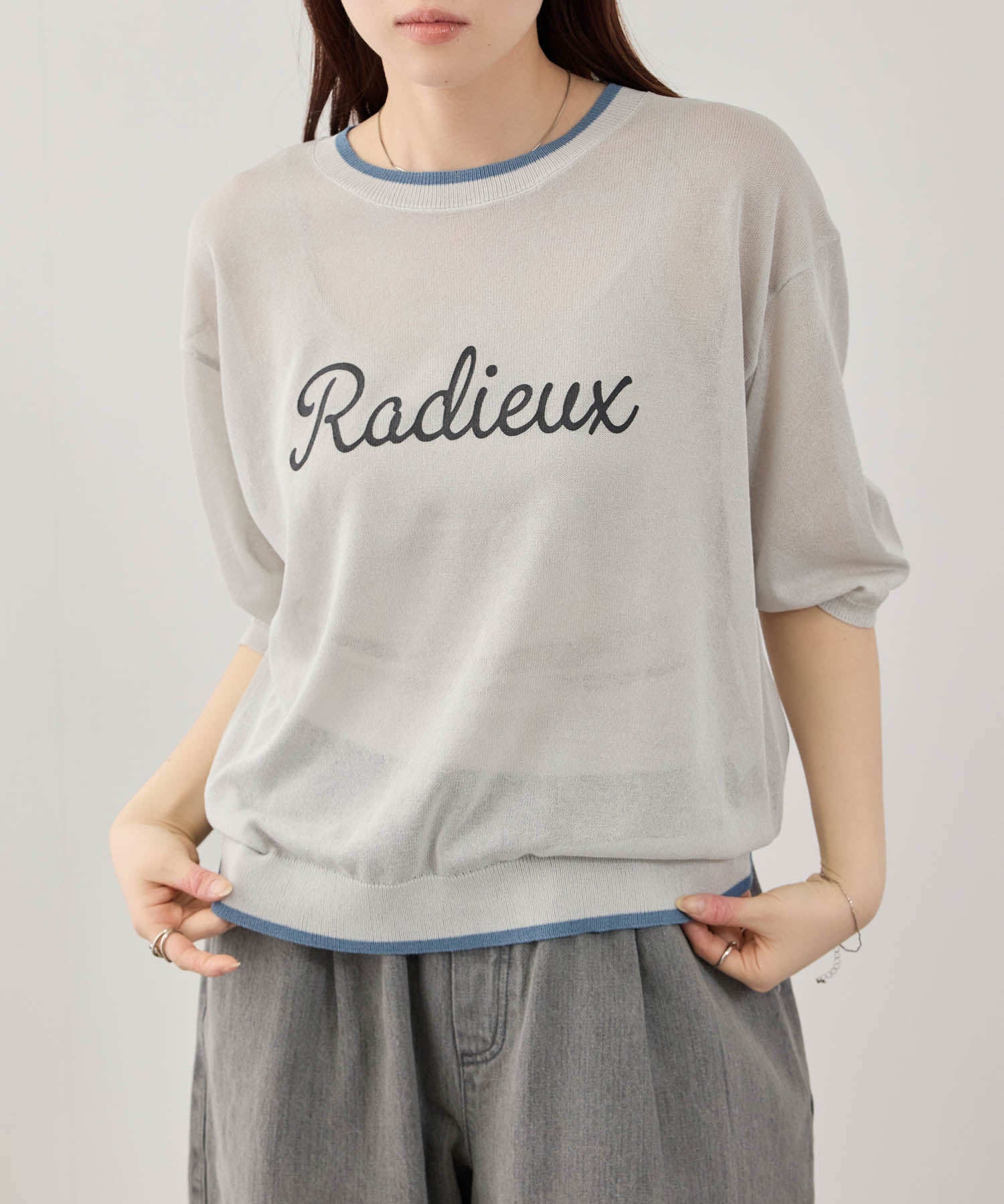 配色ライン×ロゴが目を惹く半袖シアーニット。