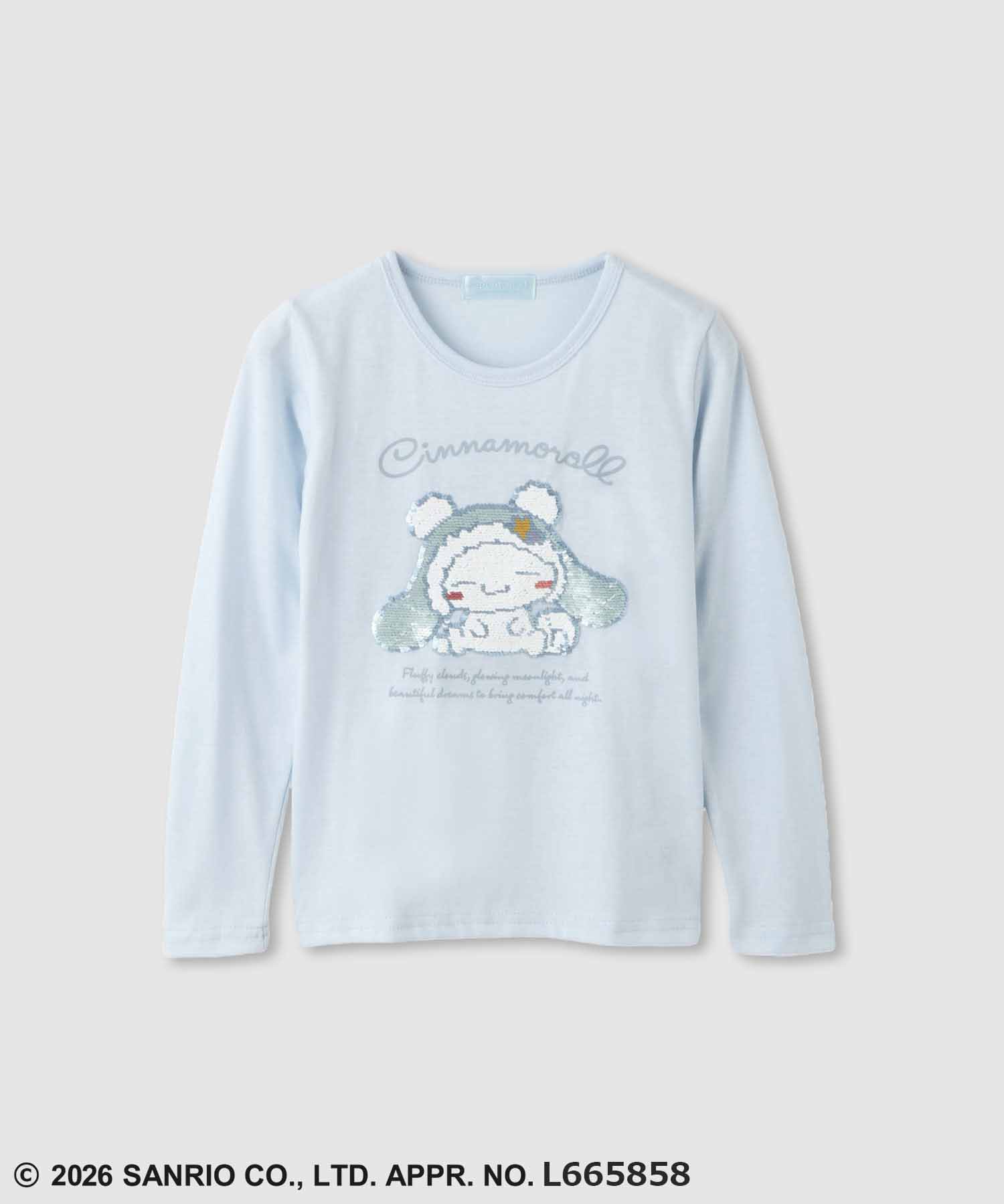 手でサッとなでるだけで色や柄が変わる、キラキラ輝くシナモロールのリバーシブルスパンコールTシャツ。
