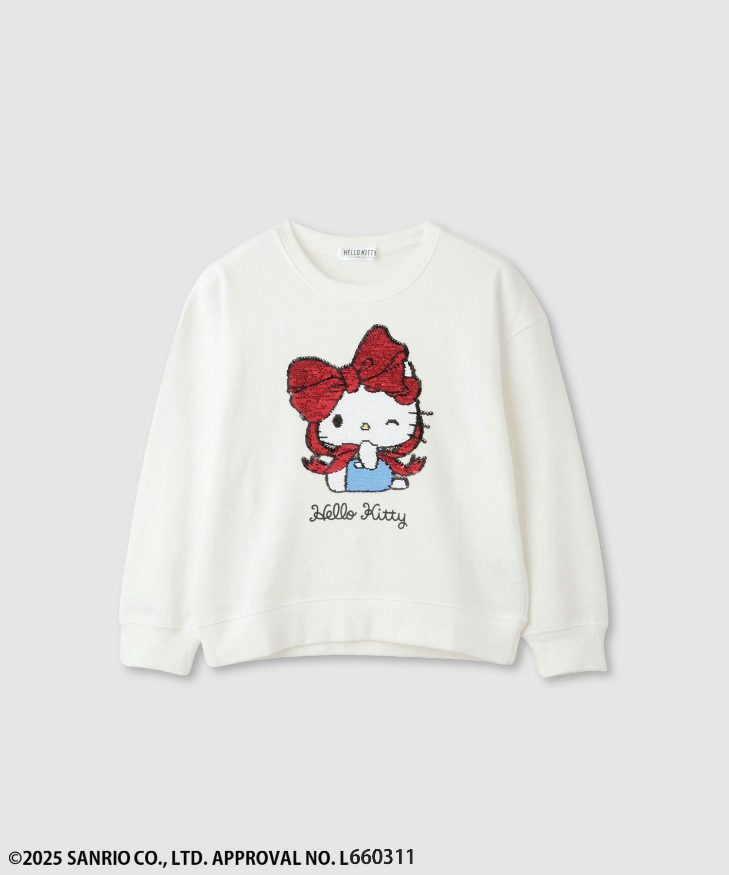 トレーナー スウェット 裏毛 子供服 女の子 ガールズ ゆったり キャラクター ハローキティ スパンコール キラキラ 白 クルーネック プルオーバー