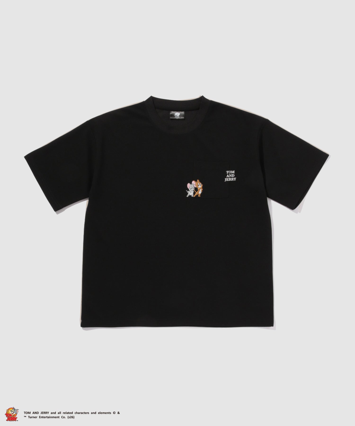 半袖Tシャツ トムとジェリー タフィー キャラクター 刺繍 白 黒 胸ポケット クルーネック カットソー ユニセックス レディース