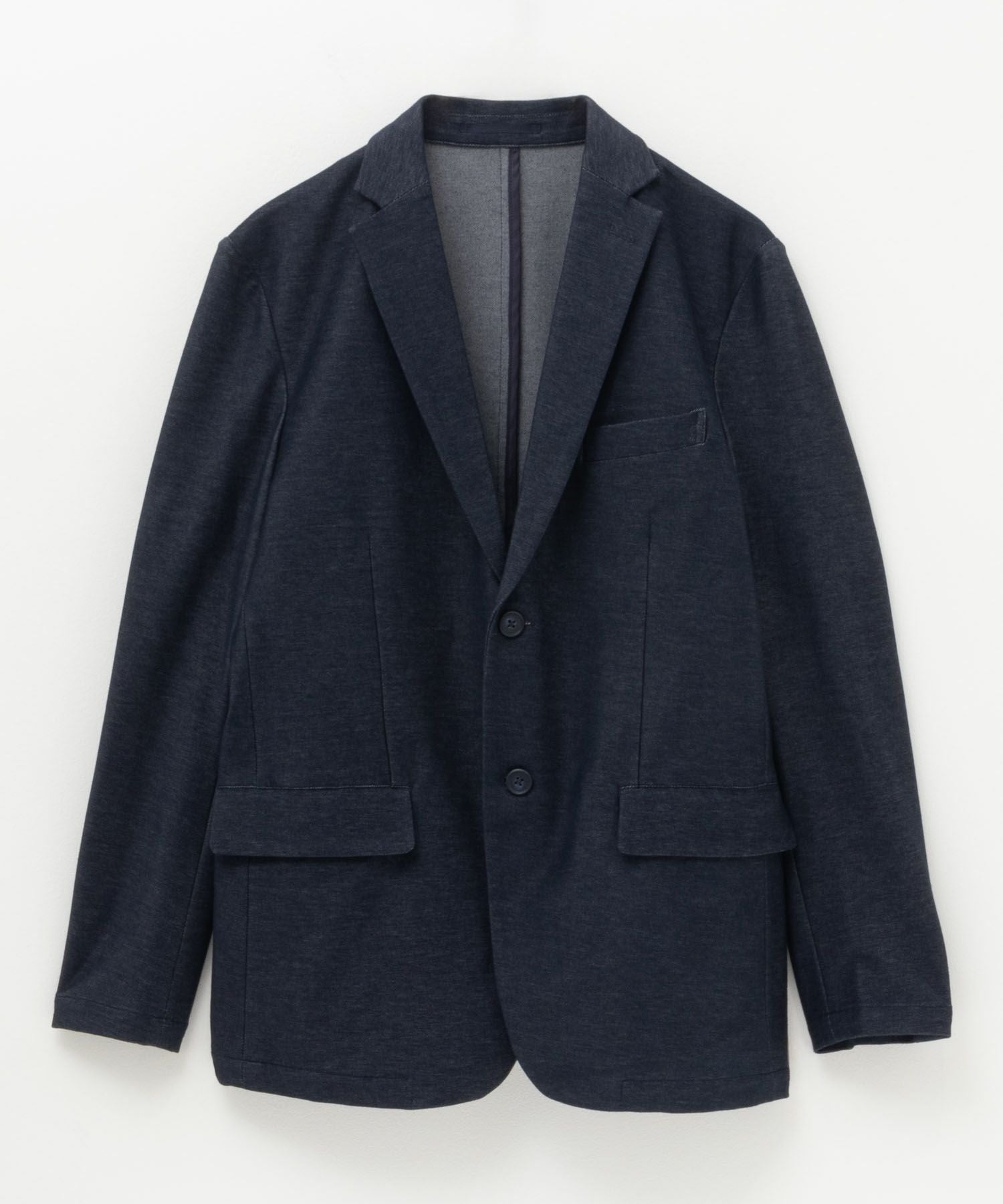 デニム見えのジャージ素材を使用した、腕が動かしやすいジャケット。