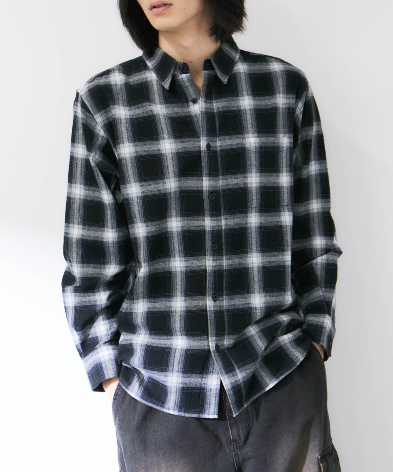 快適な着心地が魅力の、綿100%オンブレチェックシャツ。