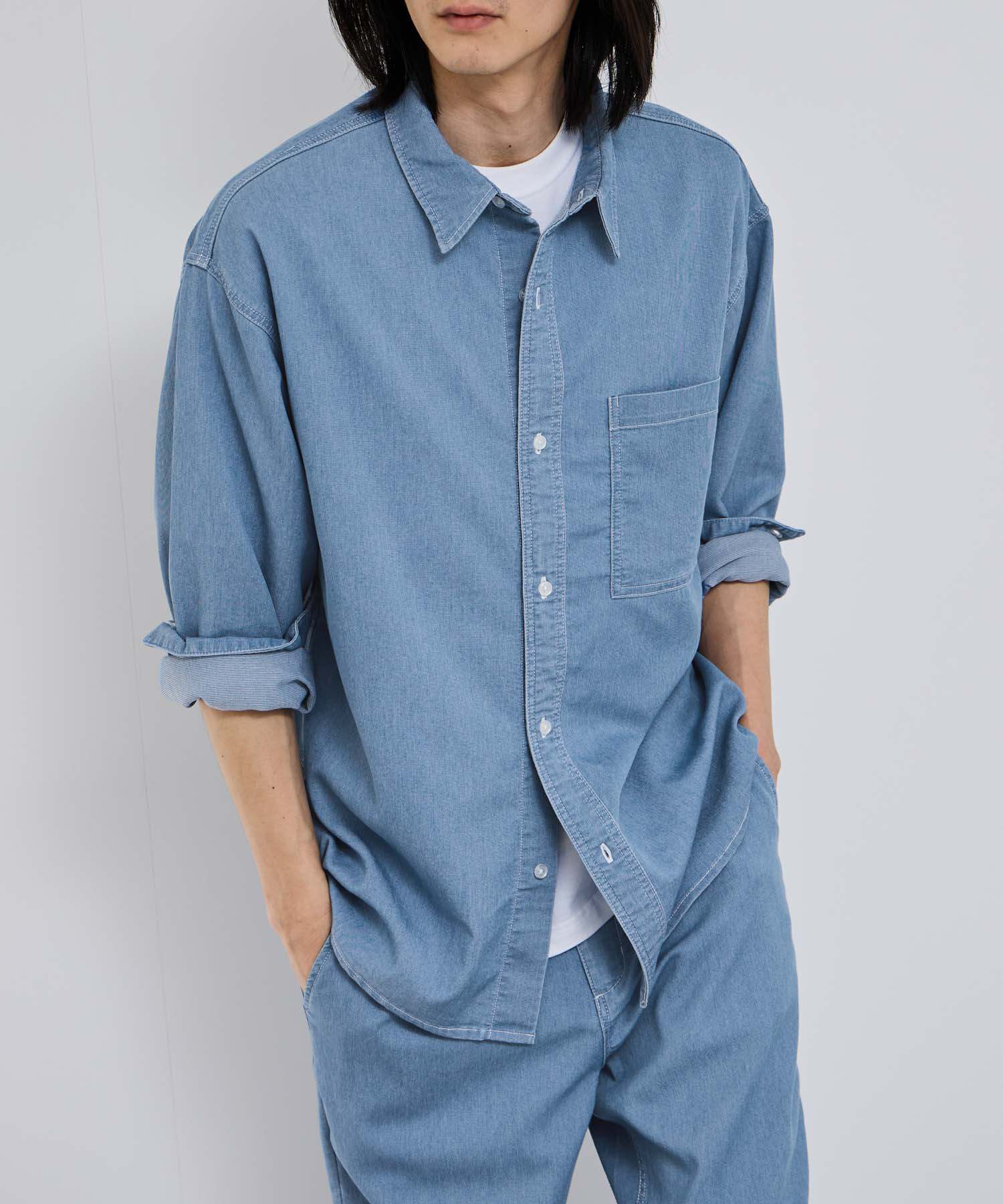 デニムの豊かな表情と、驚きの快適さを両立。ロングシーズン活躍する万能レギュラーカラーシャツ。