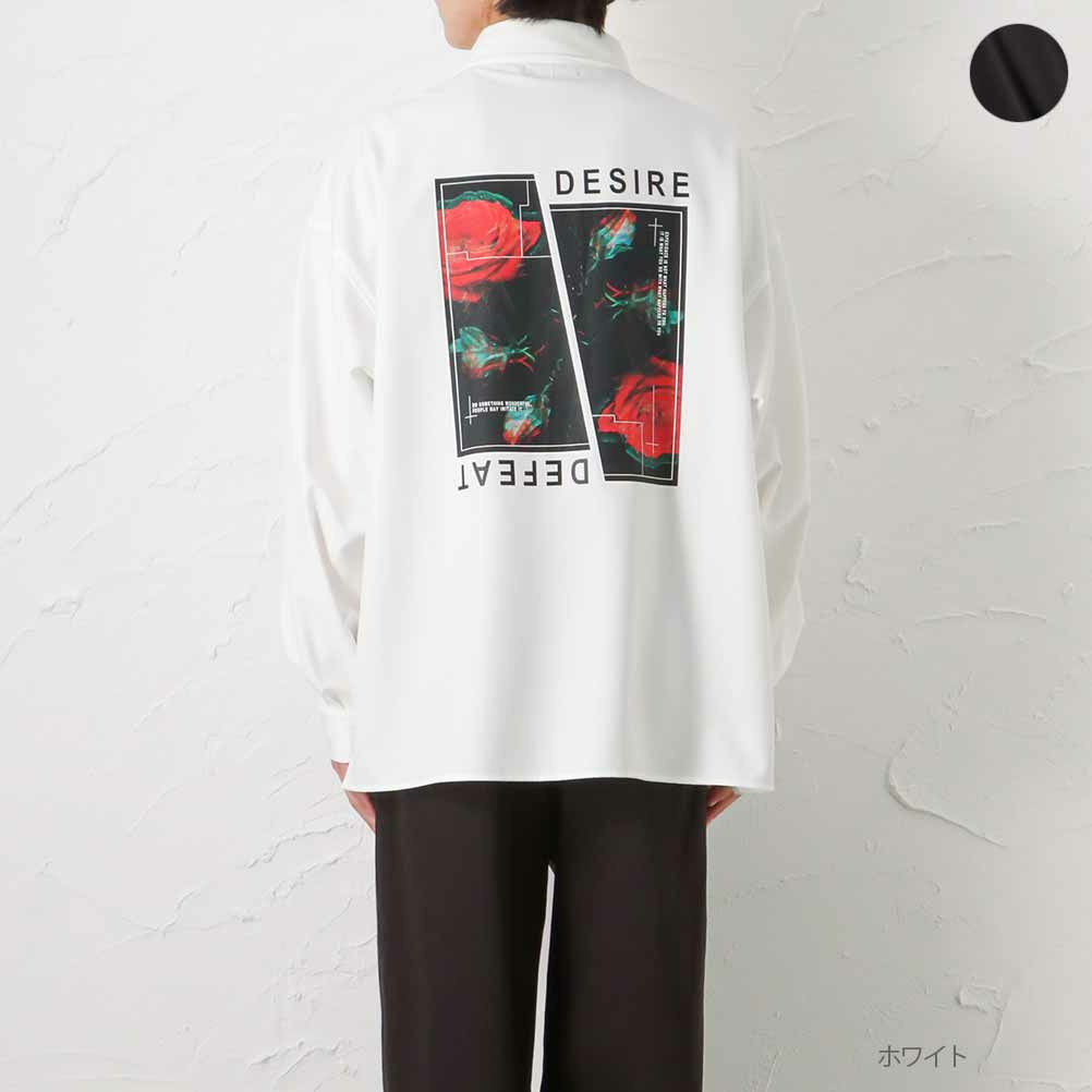 長袖シャツ 白 黒 バックプリント ビッグシルエット ゆったり 落ち感 カジュアルシャツ