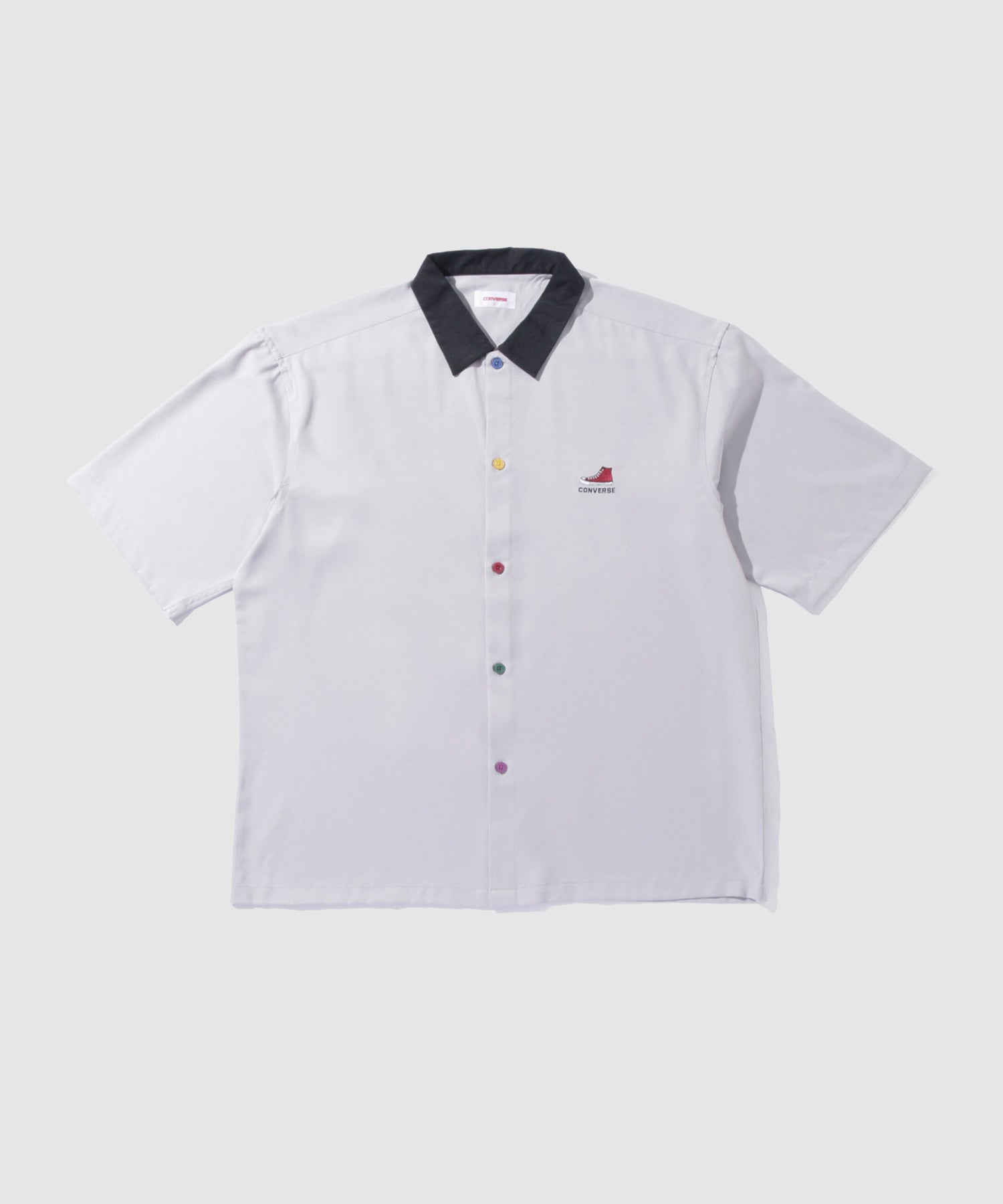 コンバース 半袖シャツ カジュアルシャツ ロゴ 刺繍 配色切替 レギュラーカラーシャツ ユニセックス レディース