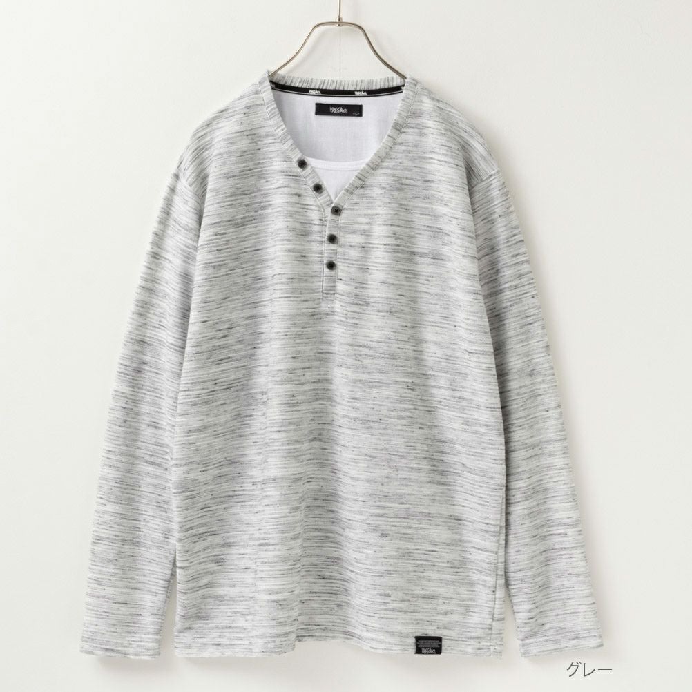 モッシモ 長袖Tシャツ ロンT Yヘンリーネック フェイクレイヤード 杢カラー ボタン カットソー