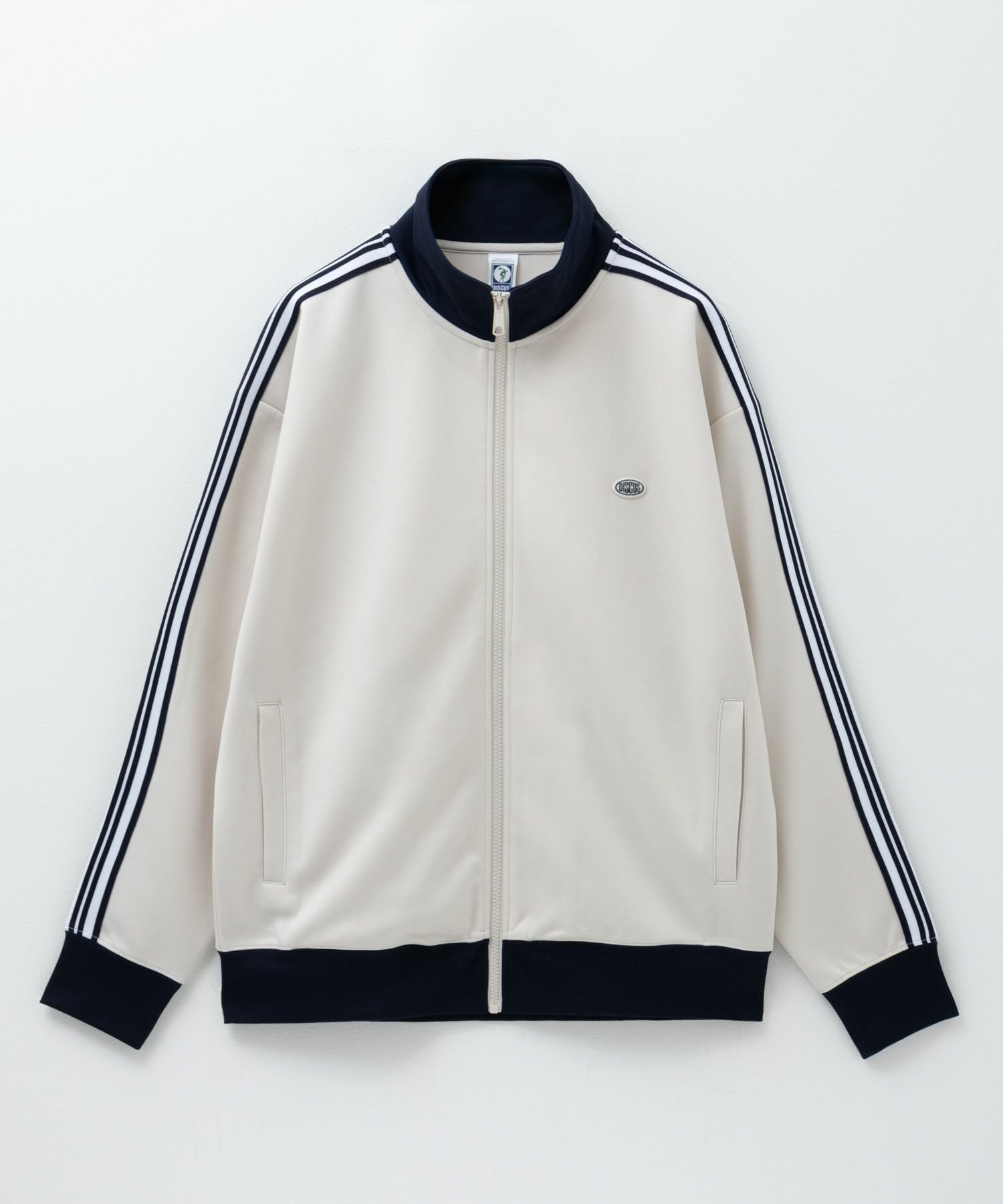 ディスカス トラックジャケット ポンチ素材 ポケット ジップアップ サイドライン ロゴ ワッペン 白 黒 スタンドカラー ジャケット ユニセックス レディース アウター