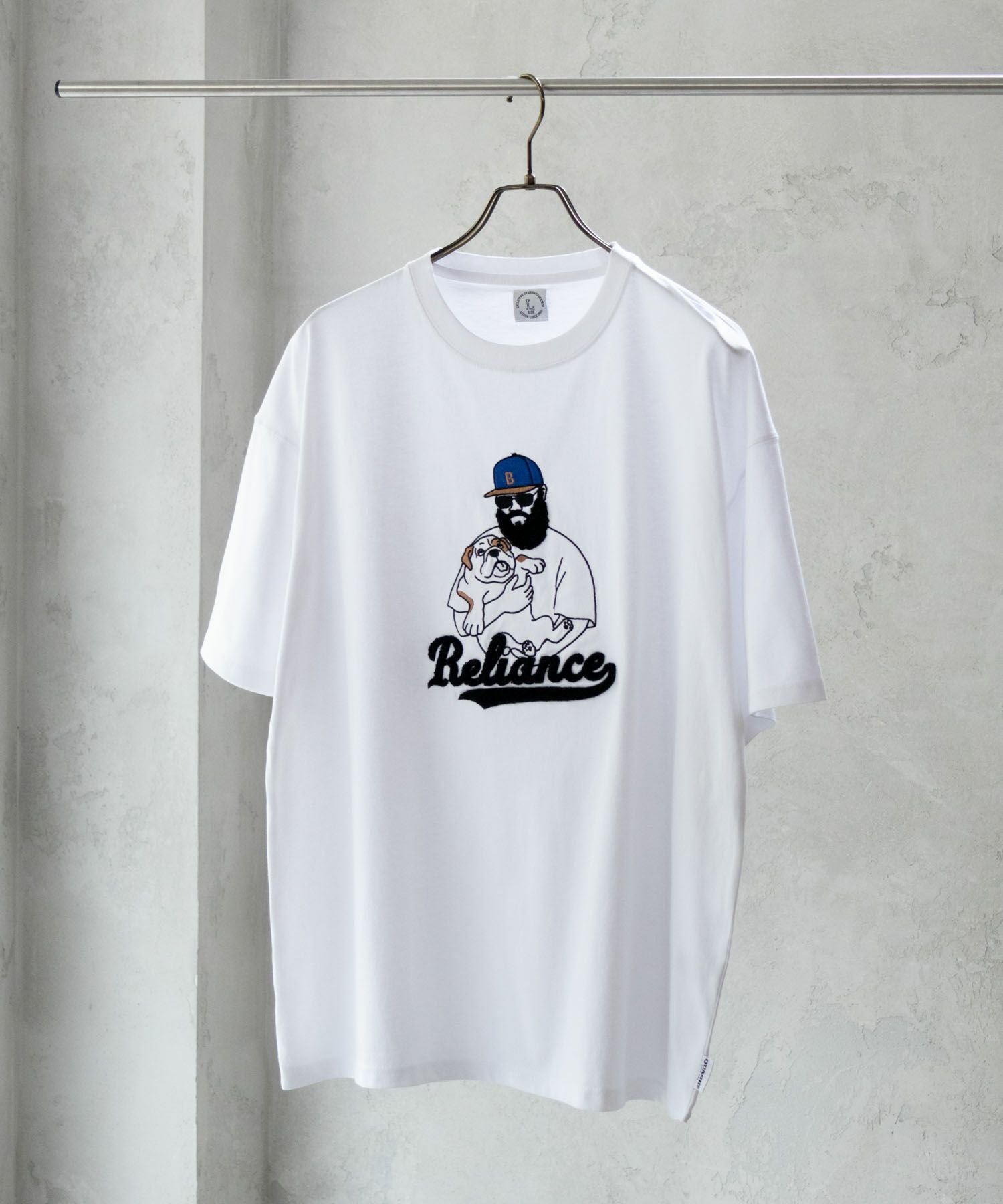 半袖Tシャツ 綿100% コットン ゆったり 男性モチーフ お父さんモチーフ サガラ刺繍 クルーネック カットソー