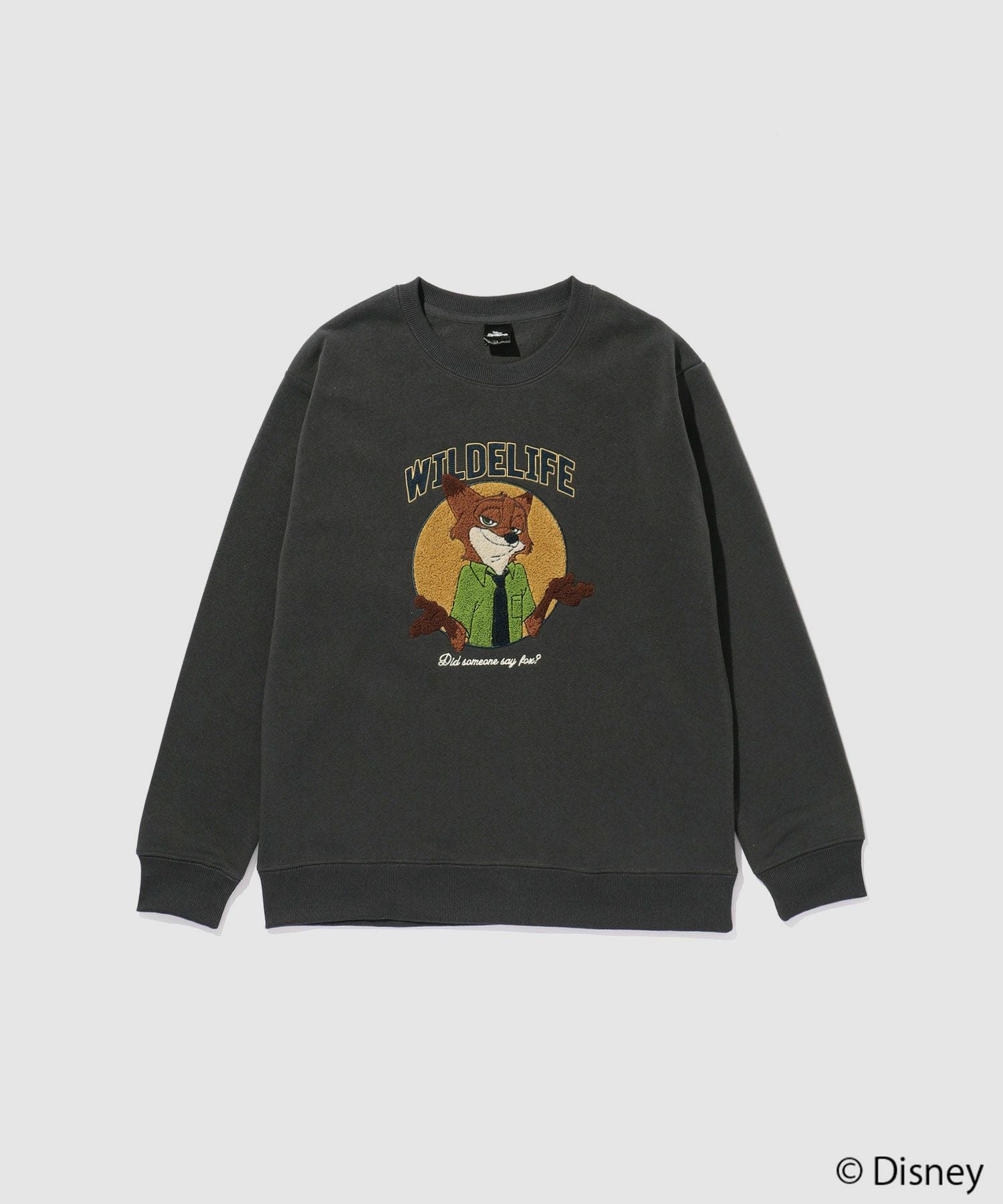 トレーナー スウェット 裏起毛 暖かい あったか キャラクター ズートピア ニック 刺繍 白 黒 プルオーバー ユニセックス レディース